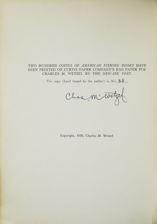 American Fishing Books, A Bibliography from the Earliest Times up to 1948, together with A History of Angling and Angling Literature in America