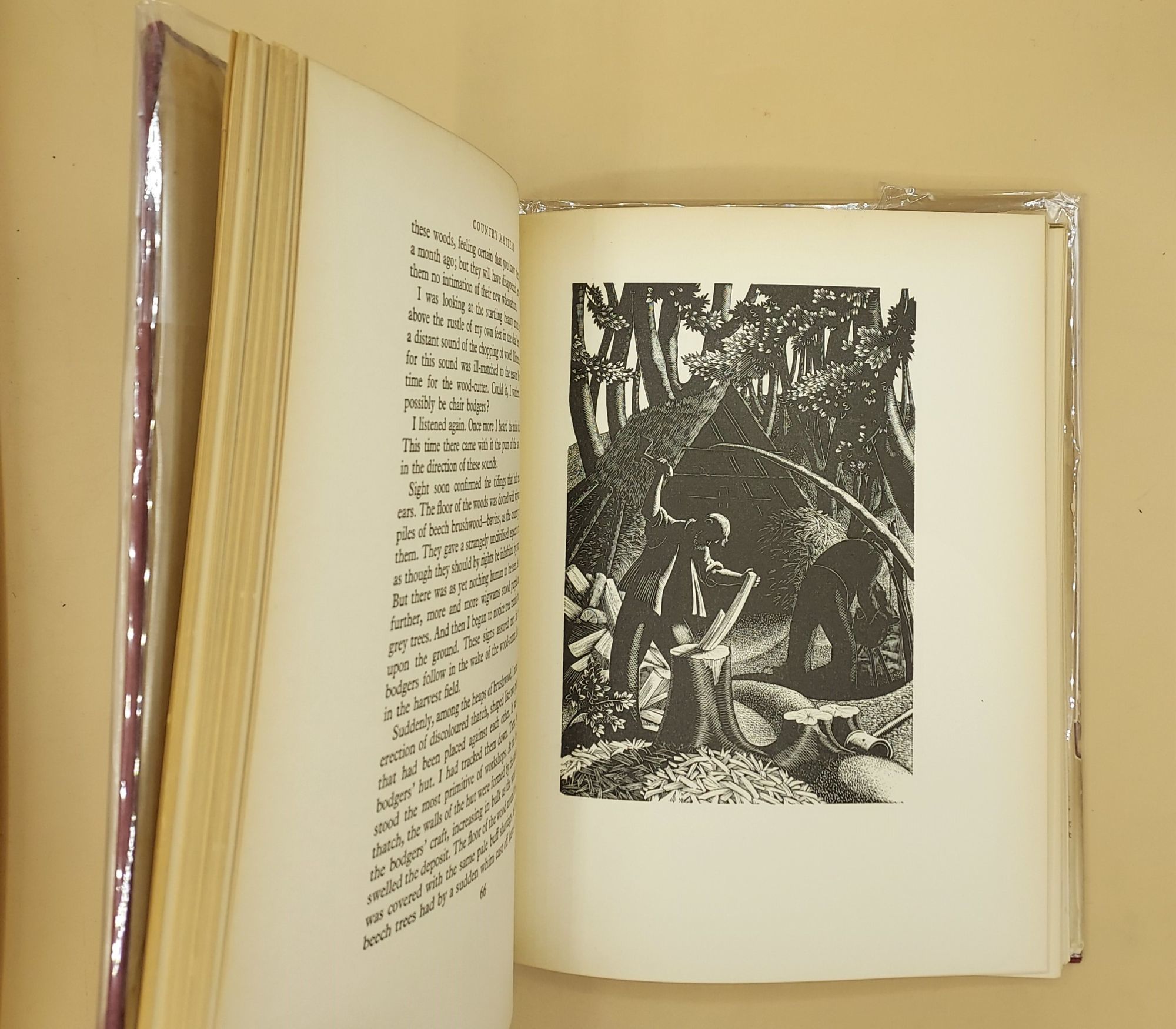 New York: The Macmillan Company, 1937. First edition. Hardcover. Clare Leighton. 159pp. Quarto [27 cm] Red cloth covered boards with a gilt stamped title on the spine. There are large splotchy areas of fading on the spine, and the top edge of the front cover has a strip of fading as well. There are small losses from the head and the foot of the spine, and the cloth on the spine has a couple of small open tears in the surface. The endsheets are darkened and a bit discolored. There is a previous owner's bookplate on the front pastedown, and there is a 2" crack in the rear endsheet along the hinge. The text block is cracked at p. 96. The dust jacket is in several pieces, and has losses from the edges. The spine of the jacket is absent. Age-toned. Clare Leighton is most known for her illustrations of agrarian life in England, Europe and the American South. Throughout her career she illustrated nearly 65 books including The Return of the Native by Thomas Hardy.