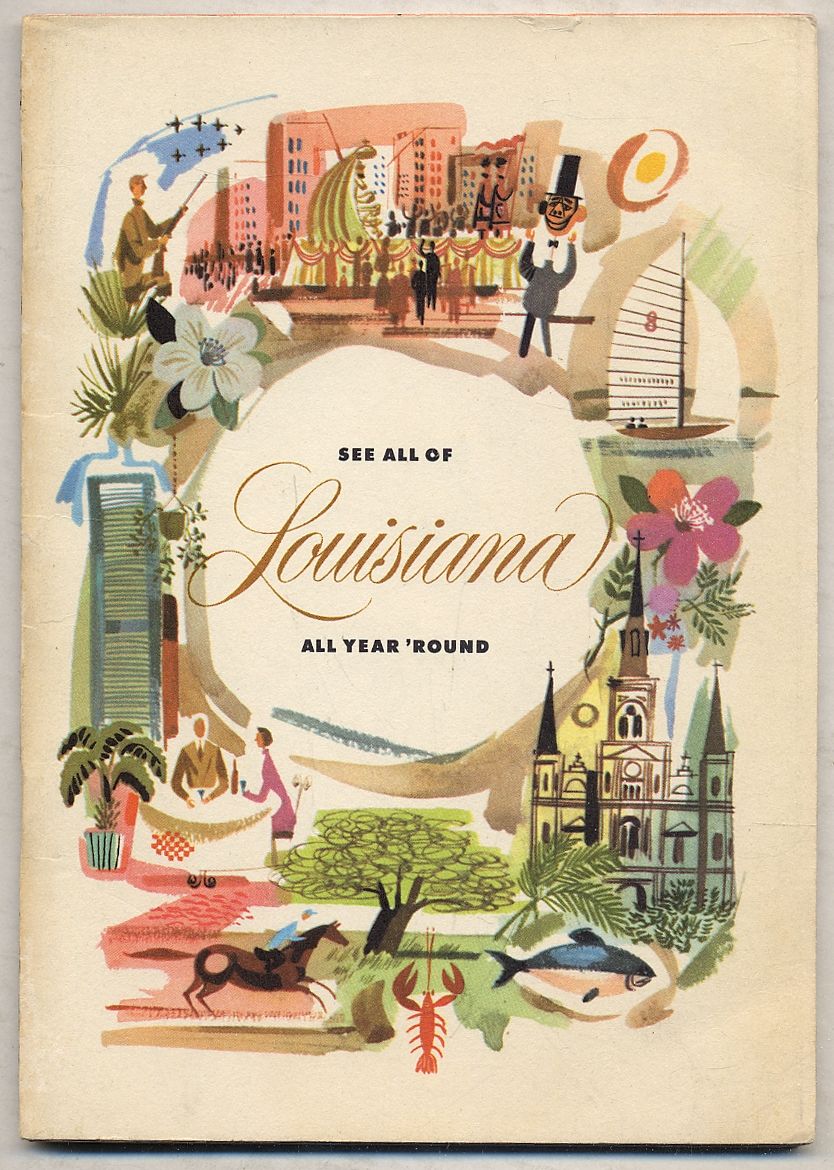 Softcover. Fine. 12mo. 40pp. Stapled, pictorial wrappers. Illustrated with black and white and color photographs, drawings. Fine. A tourist guide issued by the state, listing attractions, and relegating Mardi Gras to a center-spread illustration, and a photo on the rear wrapper. The flap of the rear wrapper reproduces a letter from Gov. Robert Kennon, who served from 1952-56.