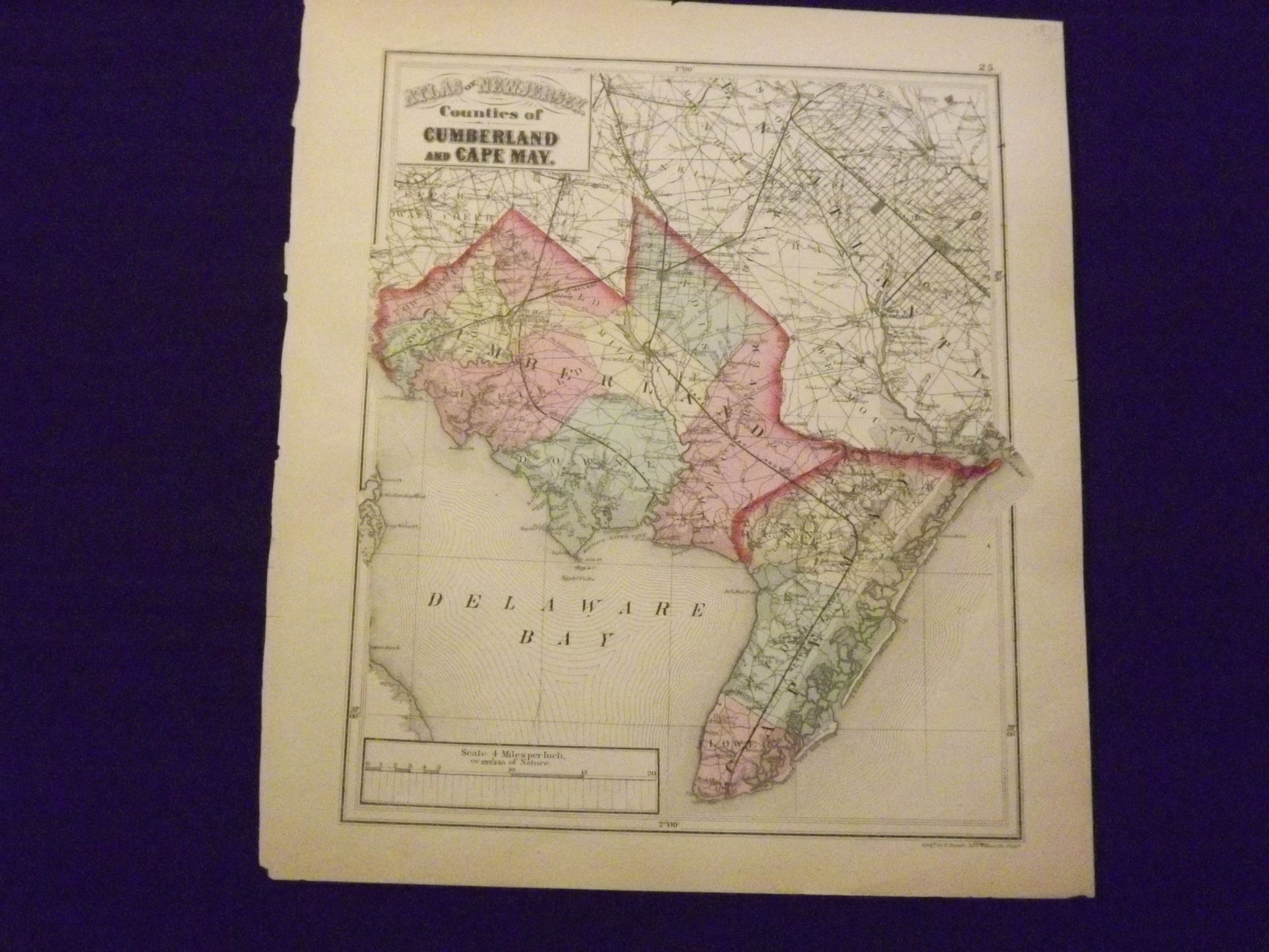 Colored map, ample margins, 14" x 15 1/2". Slight browning, and toning, a few minor margin chips and tears, otherwise bright and clean, and in very good condition. This map is from Hopkins' Atlas of New Jersey published in 1873. A very attractive map made with soft pastel colors, featuring part of the Jersey Coast. Engraved by E. Busch.