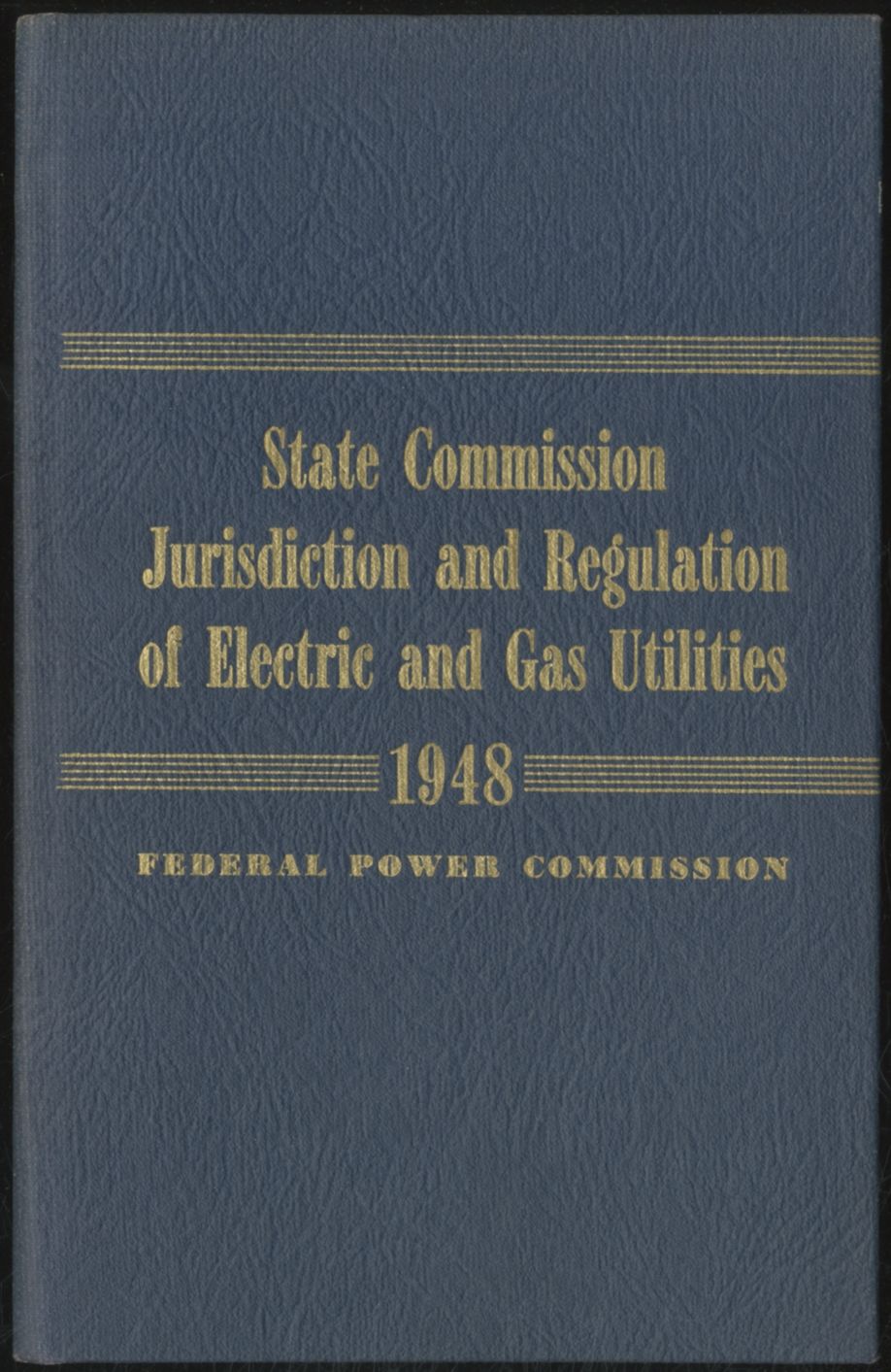 Washington, DC: Federal Power Commission, Jan, 1948. Hardcover. Very Good. First edition. 30pp. Slight rubbing and previous owner signature on the front free endpaper else very good plus. Prepared in cooperation with National Association of Railroad & Utilities Commissioners with offprint of the membership list of the National Assoc. of Railroad & Utilities Commissioners in rear pocket.