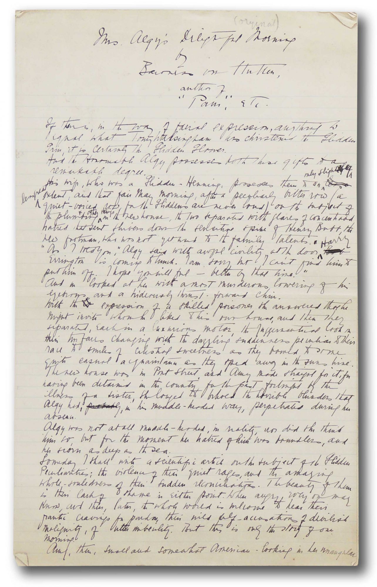 Autograph Manuscript of "Mrs. Algy's Delightful Morning