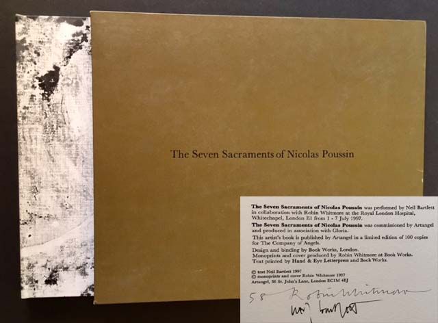 London: Artangel, 1997. 1st. Decorative Cloth. Collectible; Fine. A lovely copy of the 1997 signed/limited. #58 OF ONLY 100 COPIES ISSUED SIGNED BY BOTH NEIL BARTLETT AND ROBIN WHITMORE, who, respectively, wrote the text and illustrated this artist's book. Clean and Fine in its decorative cloth, with Robin Whitmore's monoprints complementing the text. Oblong quarto, 51 pgs. Also includes a Near Fine example of the publisher's printed cardboard slipcase. Signed by Author(s).