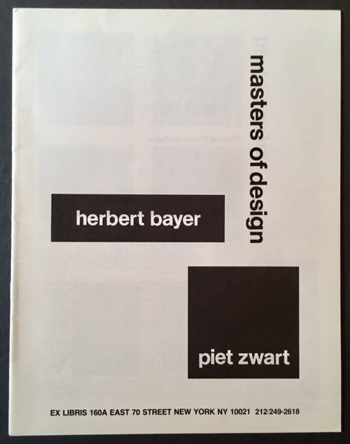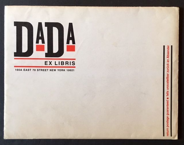 New York: Ex Libris. 1st. Original Wraps. Collectible; Fine. Herbert Bayer/Piet Zwart: Masters of Design" and "Group Portrait: The First American Avant-Garde" catalogues (both in their stapled wrappers) inside the "Dada Ex Libris" shipping envelope. Both quarto catalogues crisp and Near Fine and the "Dada" envelope is clean, well-preserved and VG+.