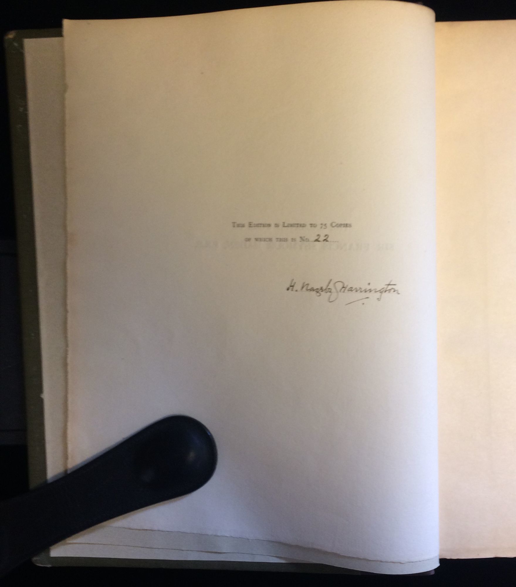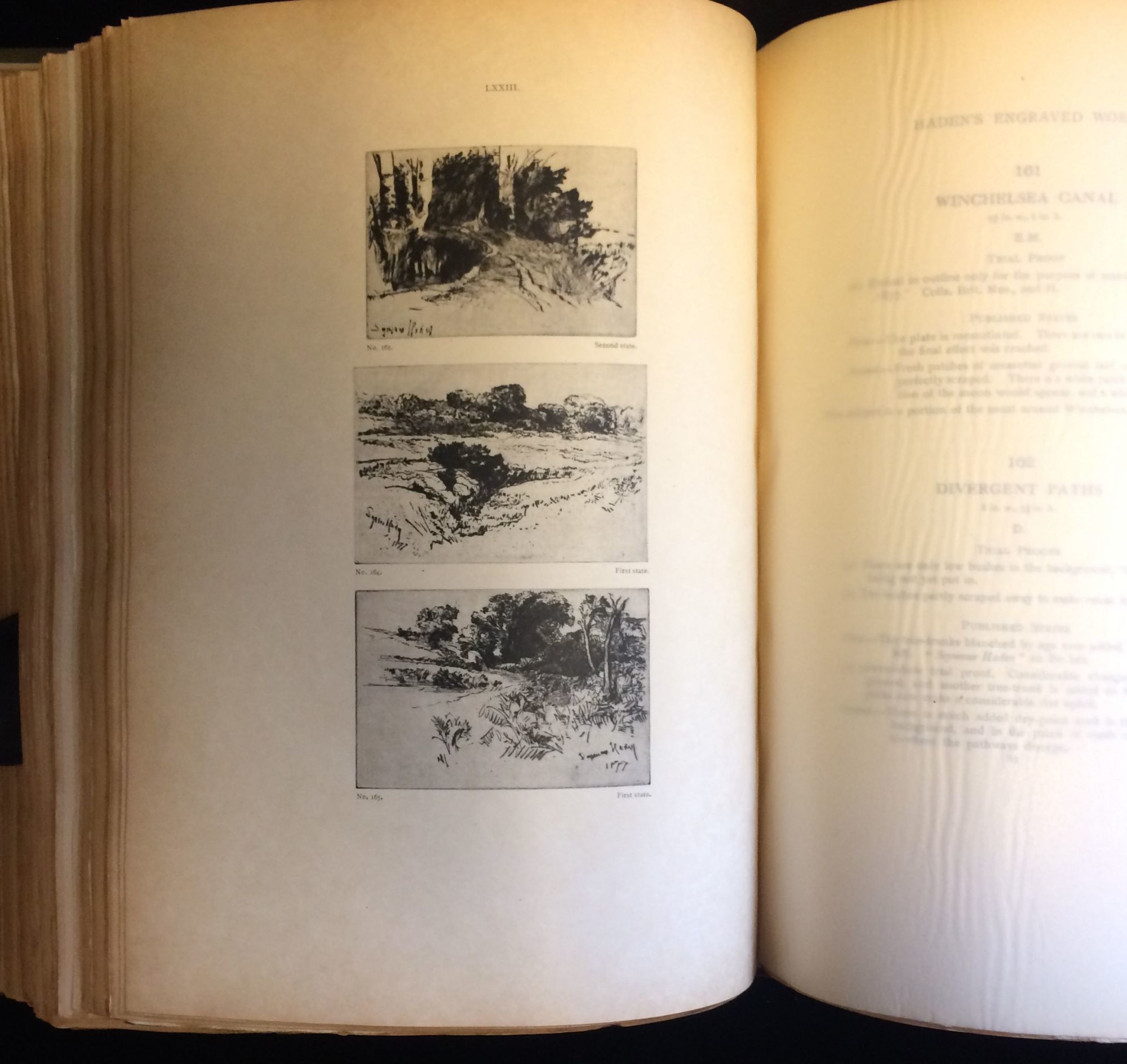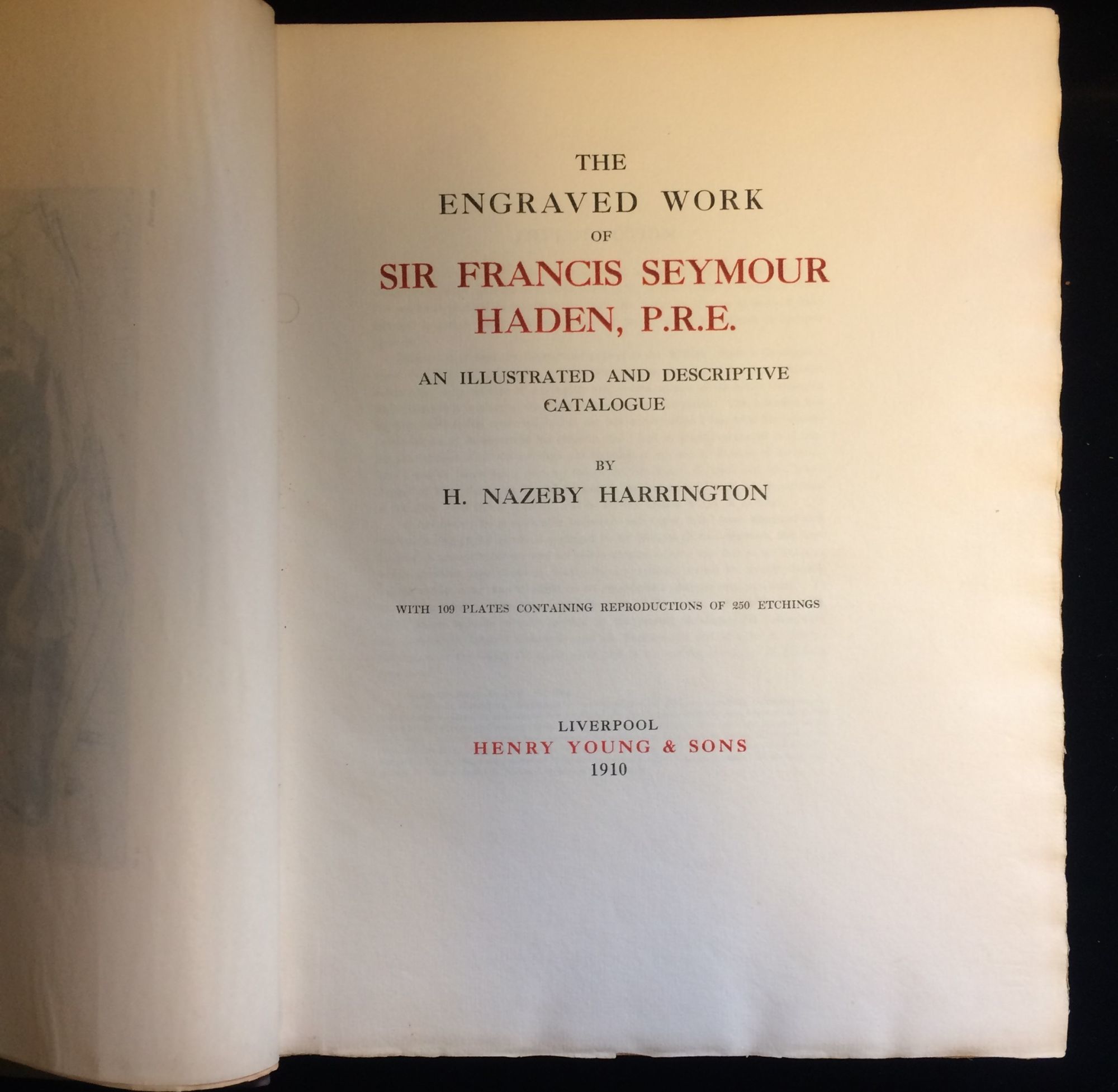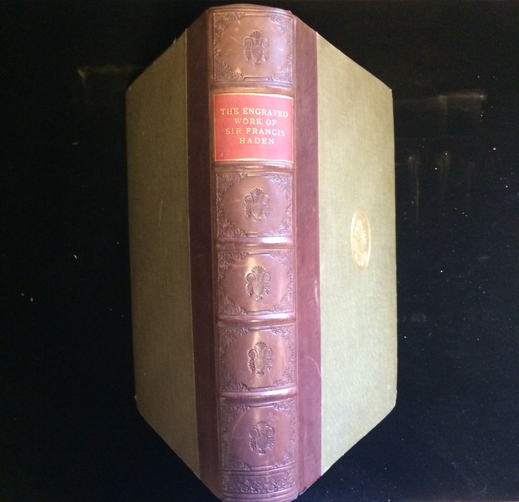 Liverpool: Henry Young and Sons, 1910. Limited Edition. Quarter Leather. Near Fine/No Jacket. Haden, Francis Seymour. #22 of 75 copies, signed by Harrington. Newly rebacked in quarter leather. With 109 plates containing reproductions of 250 etchings. Each plate has tissue guard. Raised spine with five compartments, pressed title and hand tooled decorations. Original cloth boards with gilt pressed miniature portrait front panel. gte. xxiv + 124pp. Index. Handsomely restored with original leaves remarkably clean, showing no toning or foxing.