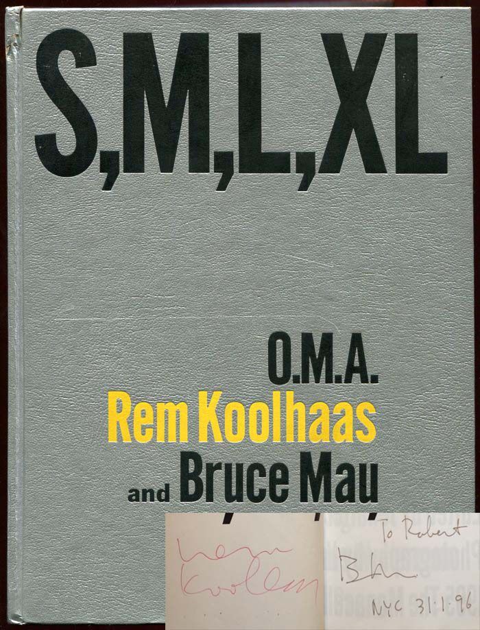 New York: The Monacelli Press, 1995. 1st. Decorative Cloth. Near Fine. SIGNED BY BOTH REM KOOLHAAS AND BRUCE MAU on the half-title. A very solid, clean copy to boot of the 1995 1st edition. Tight and Near Fine in its silver boards, with very light creasing along the spine crown. Very thick octavo, 1,344 pgs. Signed by Author(s).