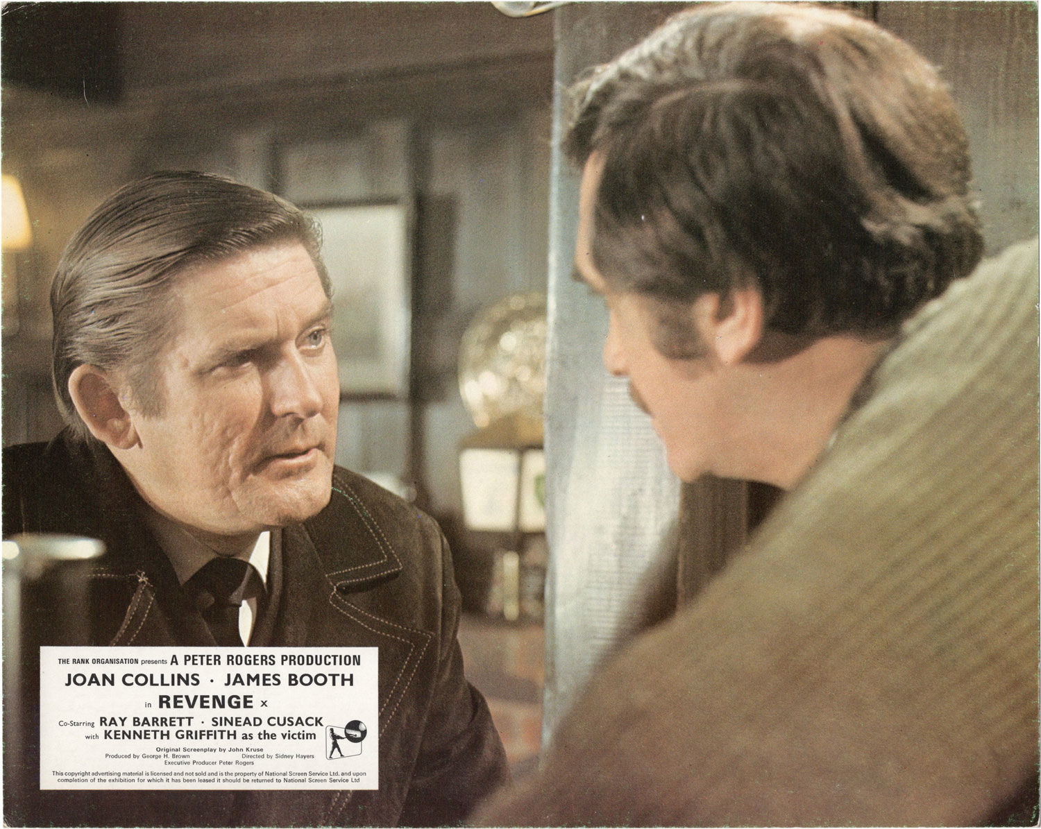 London: National Screen Service, 1971. Two vintage full-color British front-of-house cards from the 1971 UK film. Printed with the original title, "Revenge."