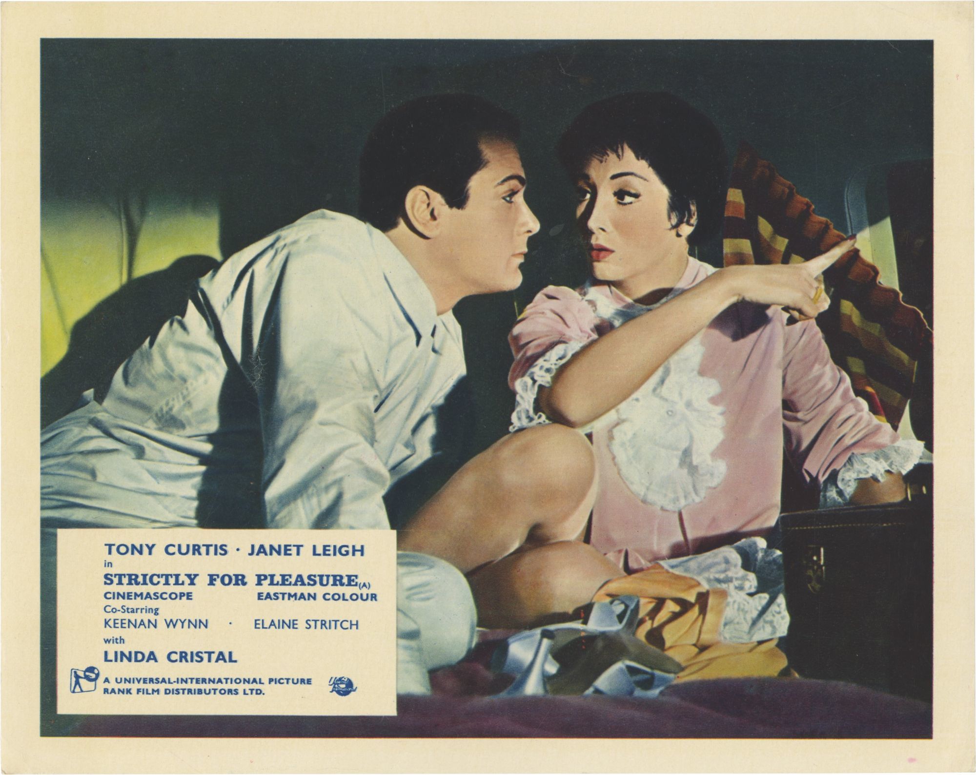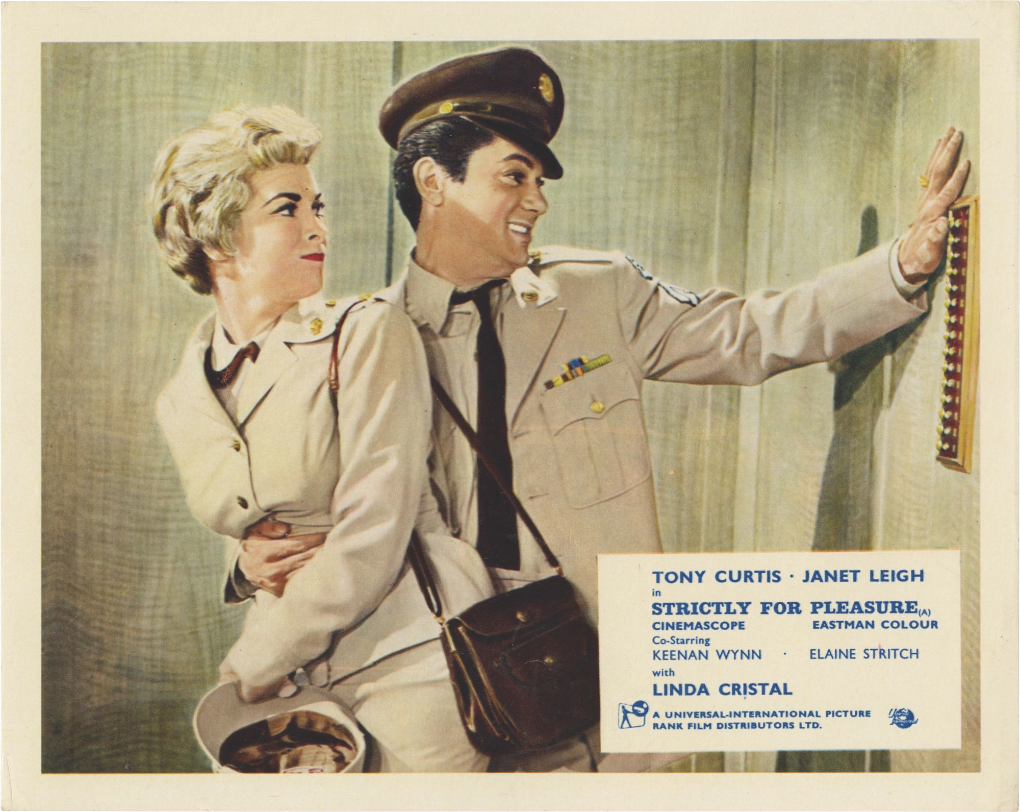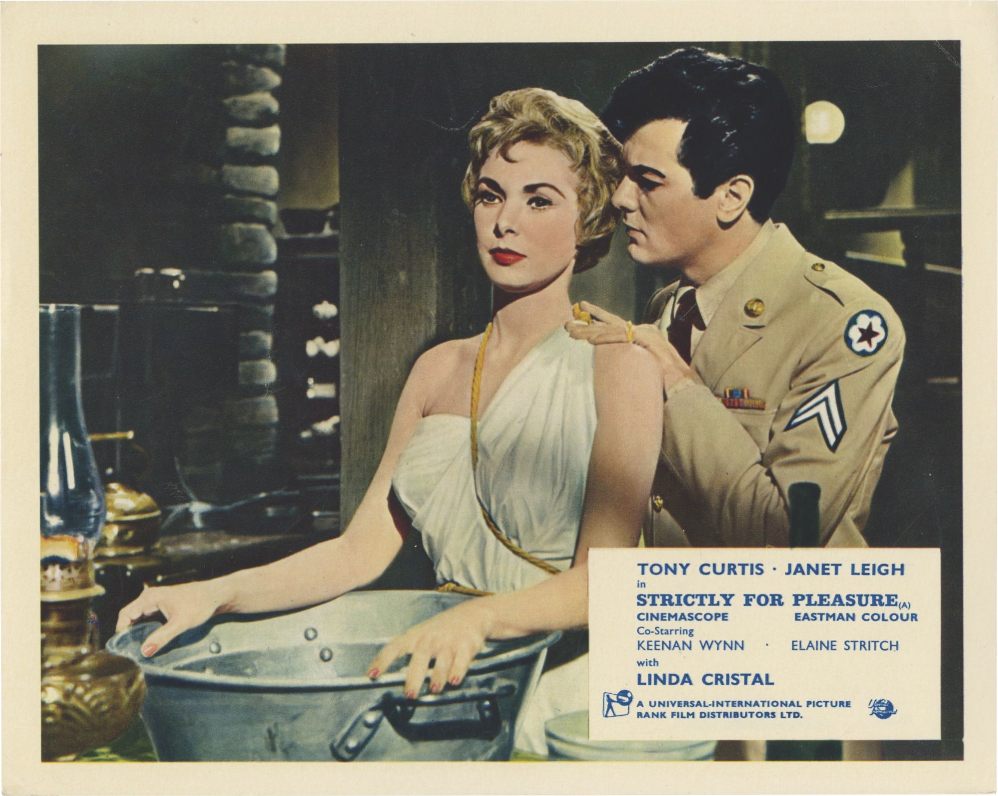 Tony Curtis stars as a sex-starved soldier who wins a date with pinup model Linda Cristal. Janet Legih (Curtis' real life wife) plays an Army shrink tasked with keeping things chaste.
