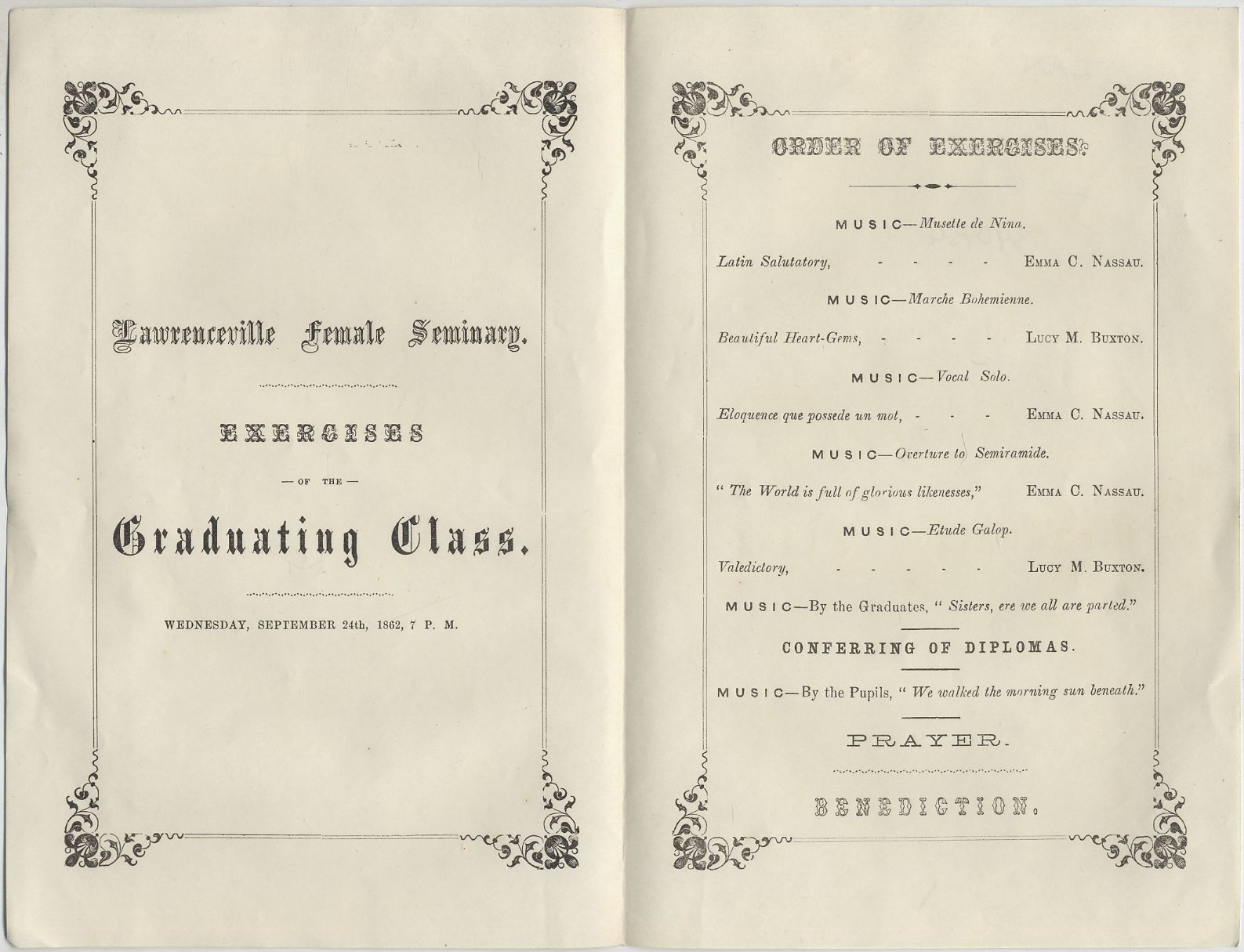 Lawrenceville Female Seminary. Exercises of the Graduating Class. Wednesday, September 24th, 1862, 7 P.M.
