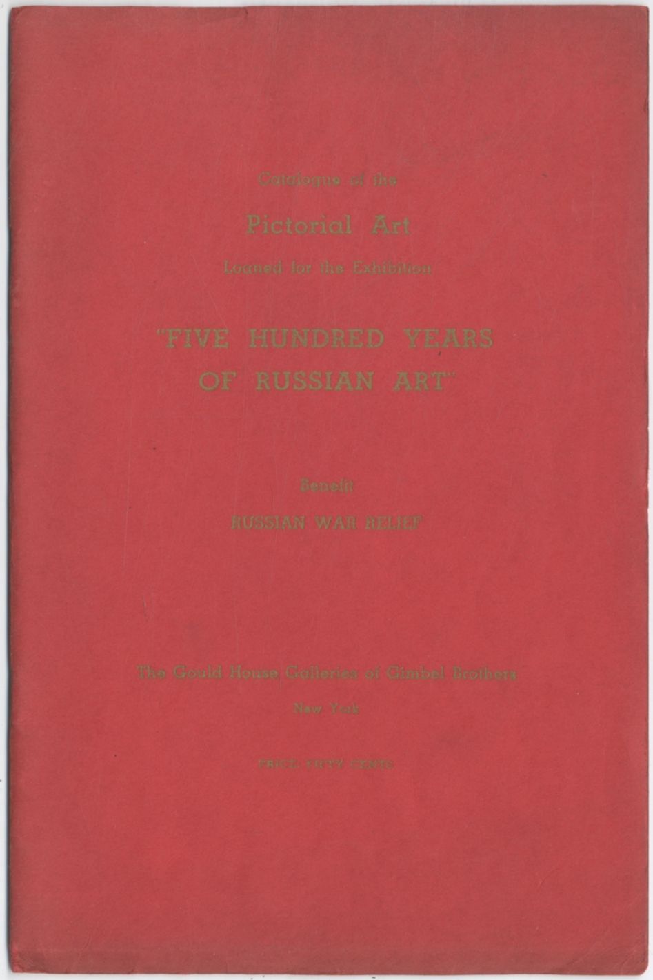 Catalogue of the Pictorial Art Loaned for the Exhibition "Five Hundred Years of Russian Art" Benefit Russian War Relief