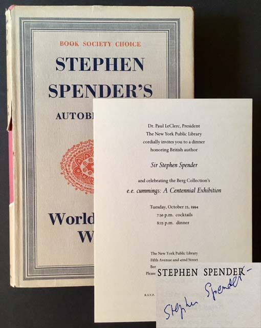 London: Hamish Hamilton, 1951. Cloth. Collectible; Fine/Very Good. SIGNED BY STEPHEN SPENDER on the title page. A sharp copy to boot of the April 1951 2nd impression. Clean and Near Fine in a bright, price-intact, VG dustjacket, with several small closed tears along the spine and very light chipping at the flap-folds. Octavo, 349 pgs. Signed by Author.