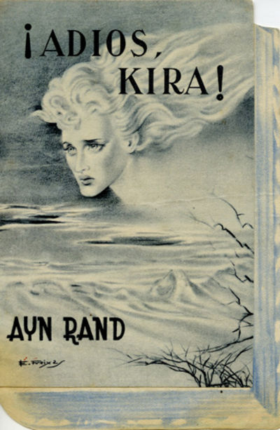 New York: Angelika Films, 1988. Two Spanish promotional flyers for the premiere of the epic 1942 Italian film version of Ayn Rand's controversial 1936 novel. One flyer is full-color and in a handbill style, the other cut to look like a book, and opens to reveal the film's details, along with the logo of the Spanish distributor, Una Distribucion.