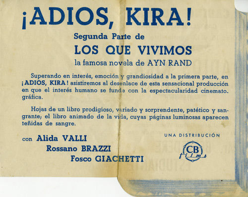 We the Living [Noi Vivi / Addio Kira] (Two Spanish promotional flyers from the premiere of the 1942 Italian film)