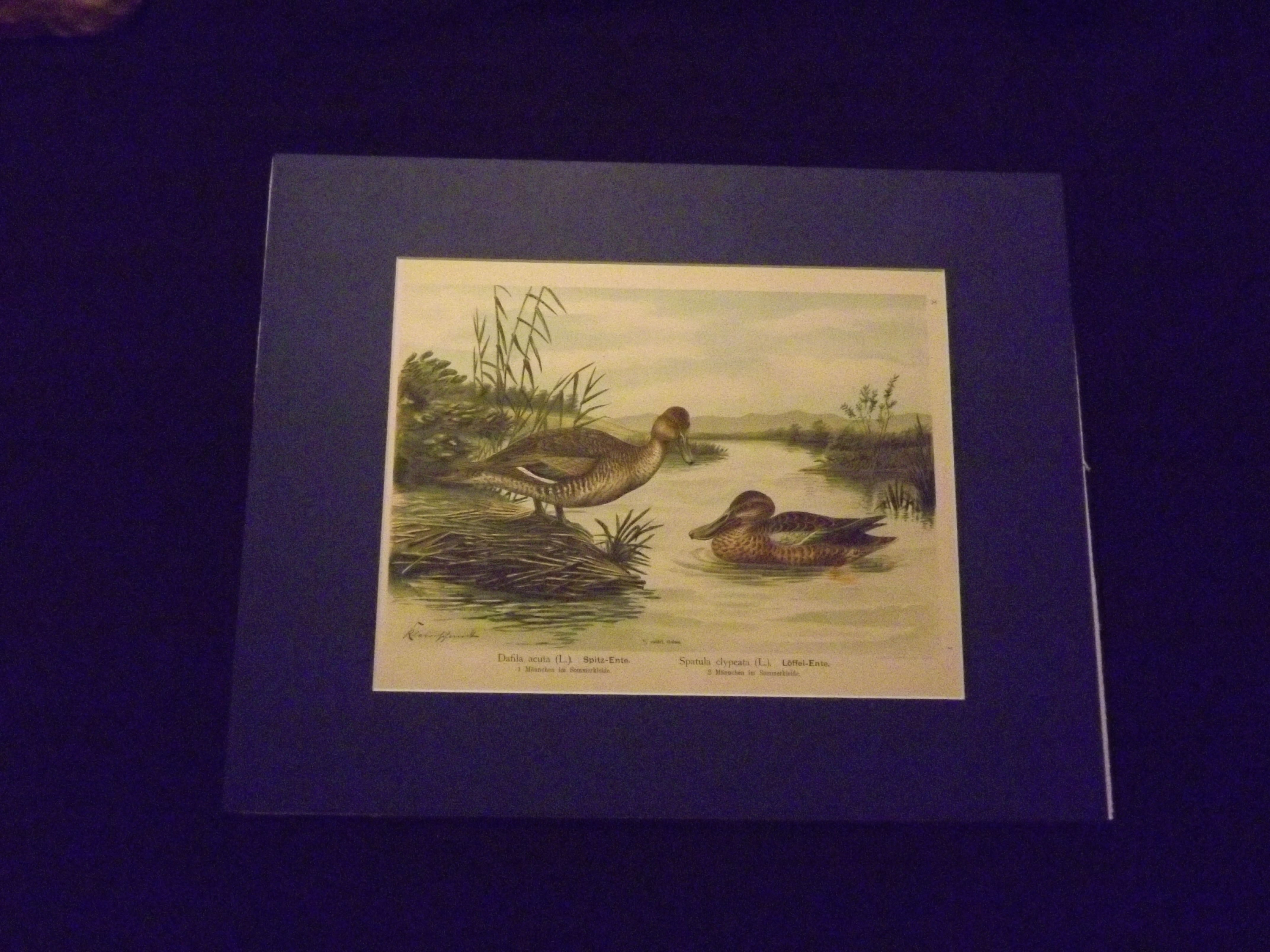 Folio (11" x 15") chromolithograph, colored, archivally matted, attached at top margin, ample margins. Some slight aging and browning; otherwise bright and clean and very colorful. This very attractive chromolithograph of ducks is taken from Johann Andreas Naumann's (1747-1846) work on European birds. This illustration shows two ducks against a natural background. A very colorful plate. May require extra shipping. Ripley and Scribner page 205. Zimmer 453-461.
