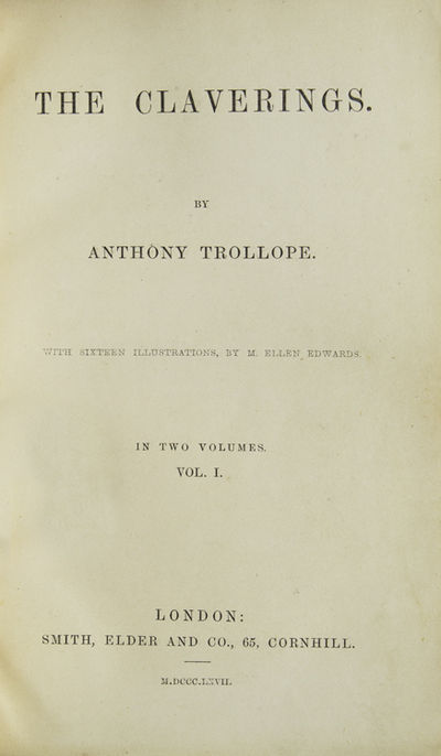 London: Smith and Elder, 1867. First edition. 16 wood-engraved plates by H. Harral after M. Ellen Edwards. [ii], 313, [1, printer’s imprint, Smith, Elder]; [ii], 309, [1] pp. 2 vols. Large 8vo. Bound in three-quarter blue morocco and matching cloth sides, t.e.g., by Bayntun, Binders, Bath. Bookplate. Spine slightly sunned, else fine. Edwards. First edition. 16 wood-engraved plates by H. Harral after M. Ellen Edwards. [ii], 313, [1, printer’s imprint, Smith, Elder]; [ii], 309, [1] pp. 2 vols. Large 8vo. Sadleir, Trollope, 27