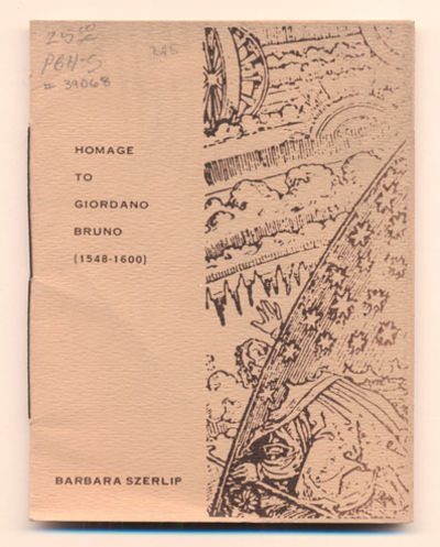 1974. Paperback. 5pp. Very slim twenty-fourmo. Sewn tan and brown pictorial wraps. Near fine condition. Barbara Szerlip founded a "small press" literary magazine called Tractor as an undergraduate. She is also a two-time National Endowment for the Arts Writing Fellow.