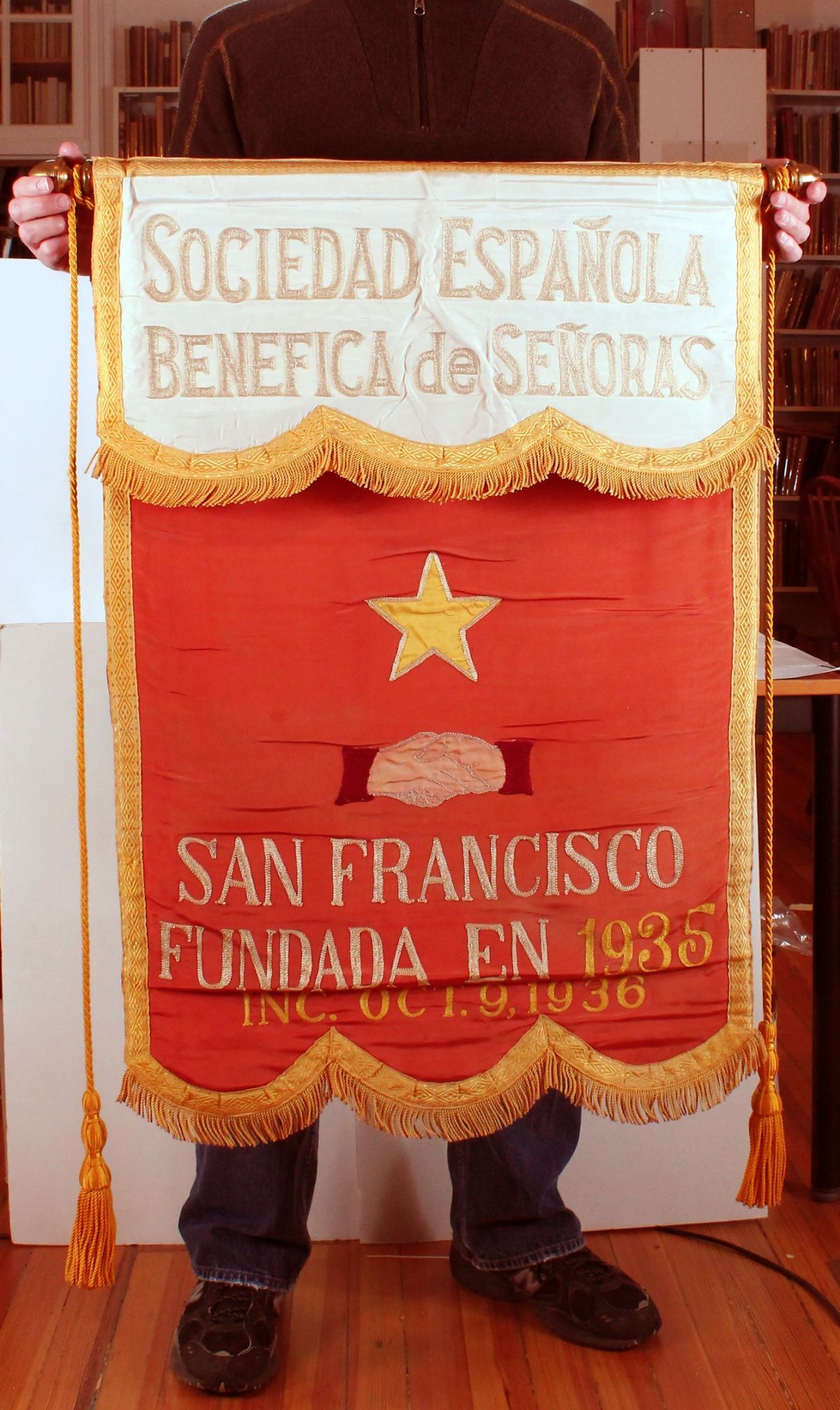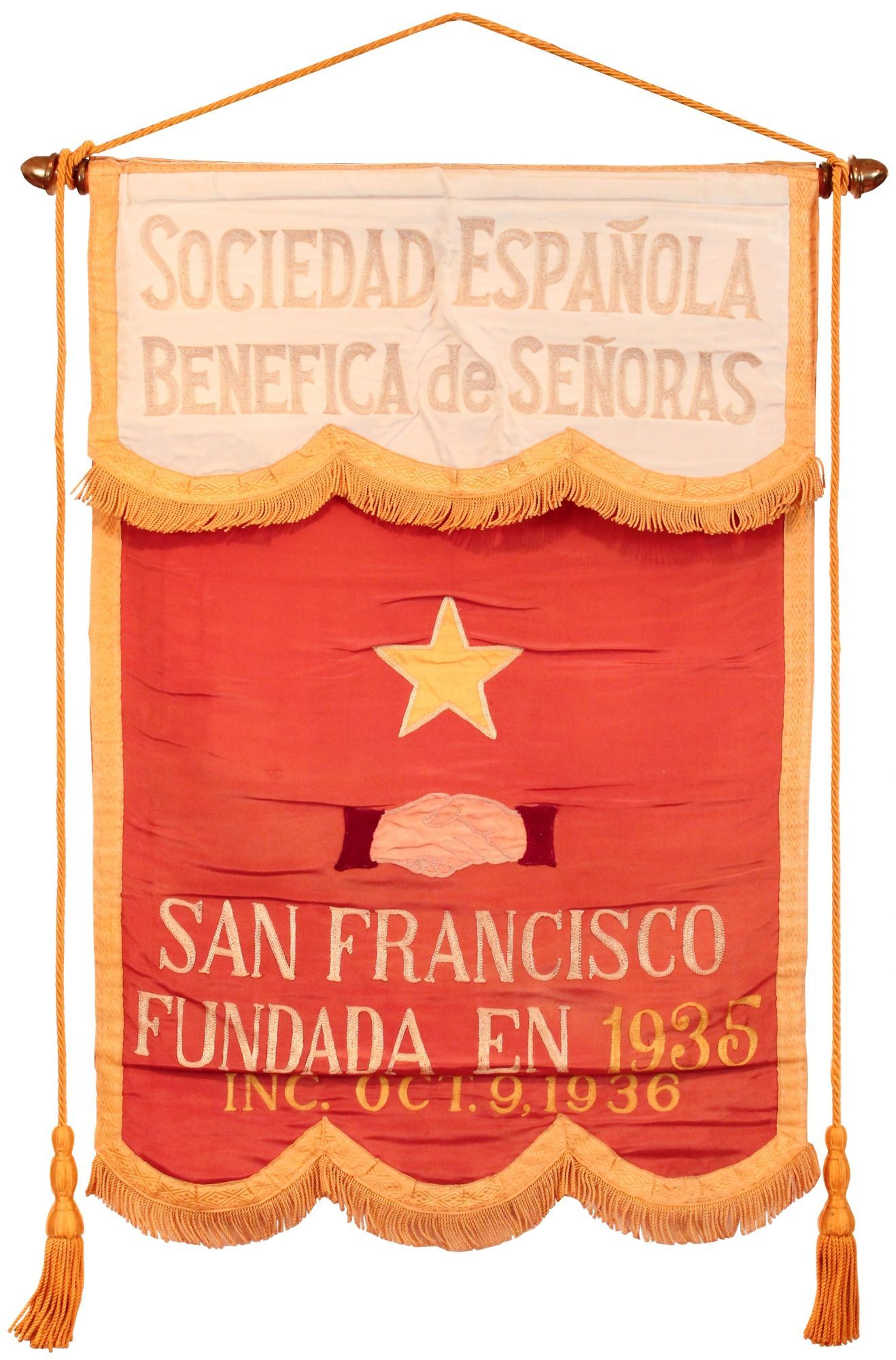 [Silk Banner]: Sociedad Española Benefica de Señoras. San Francisco. Fundada en 1935. Inc. Oct. 9, 1936 [Spanish Ladies Beneficial Society. San Francisco. Founded in 1935. Incorporated. Oct. 9, 1936]