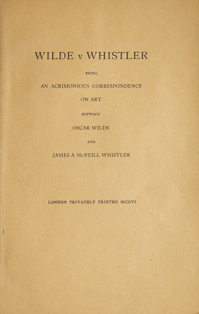 Wilde v Whistler. Being An Acrimonious Correspondence on Art between Oscar Wilde and James A. McNeill Whistler