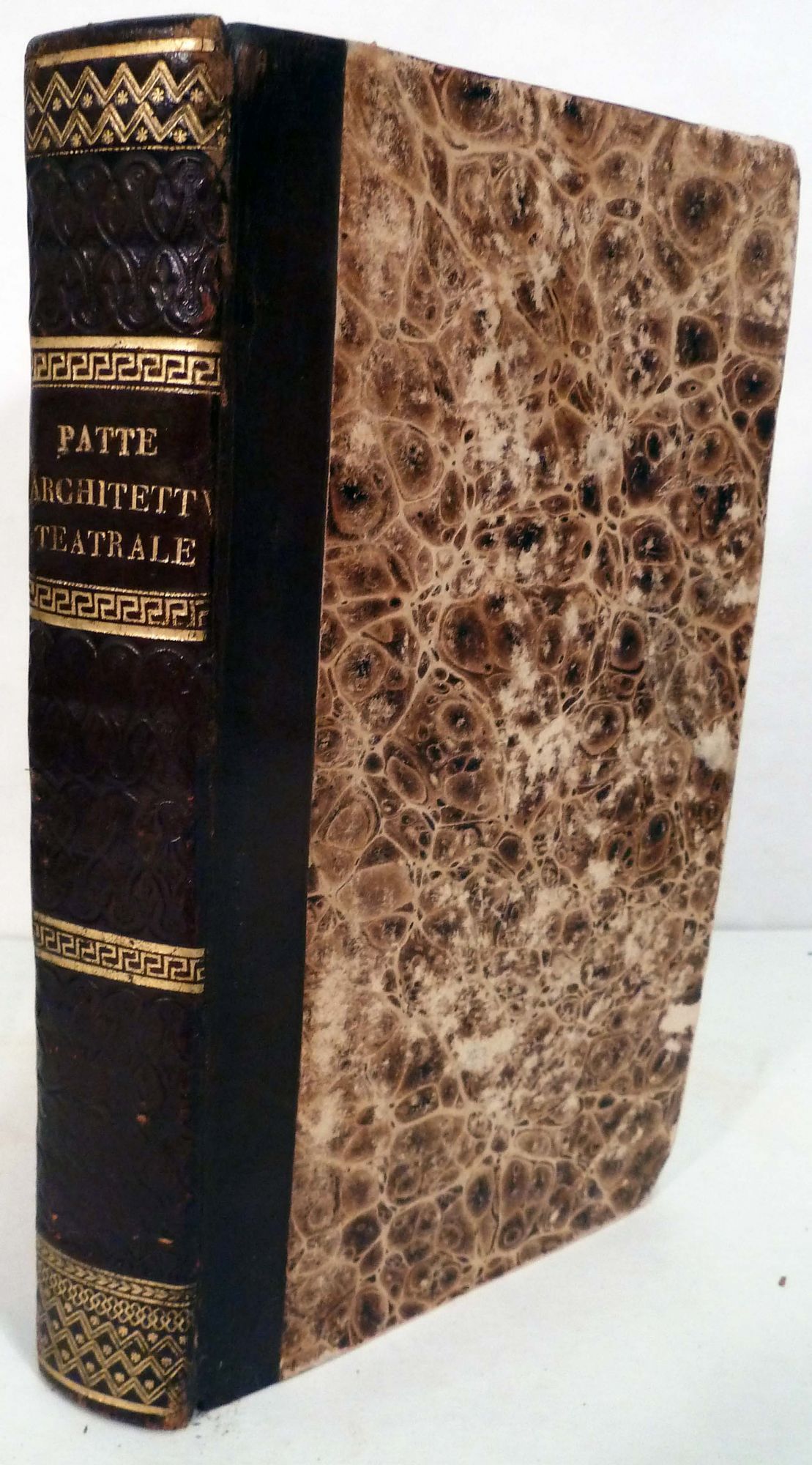 Milan: Tipografia del dottor Giulio Ferrario, 1830. First edition. Hardcover. Contemporary calf backed marbled boards, backstrip decorated in gilt and blind. Very good. [XIX] 359 pages. 21 x 13 cm. Twelve folding plates. Pages misnumbered: vii as vi, 62 as 26, 179 as 176. Errata: p. [376]. Includes bibliographical references. Includes an aquatint plate by V. Raineri, lithographic plates by Giovanni Carlo Castellini, and unsigned engravings of theater schematics. Paolo Landriani (1757–1839), an Italian painter and architect was employed at La Scala theatre, well respected there as a decorator. Text clean, back cover marbled board paper abraded at fore-edge with slight loss.