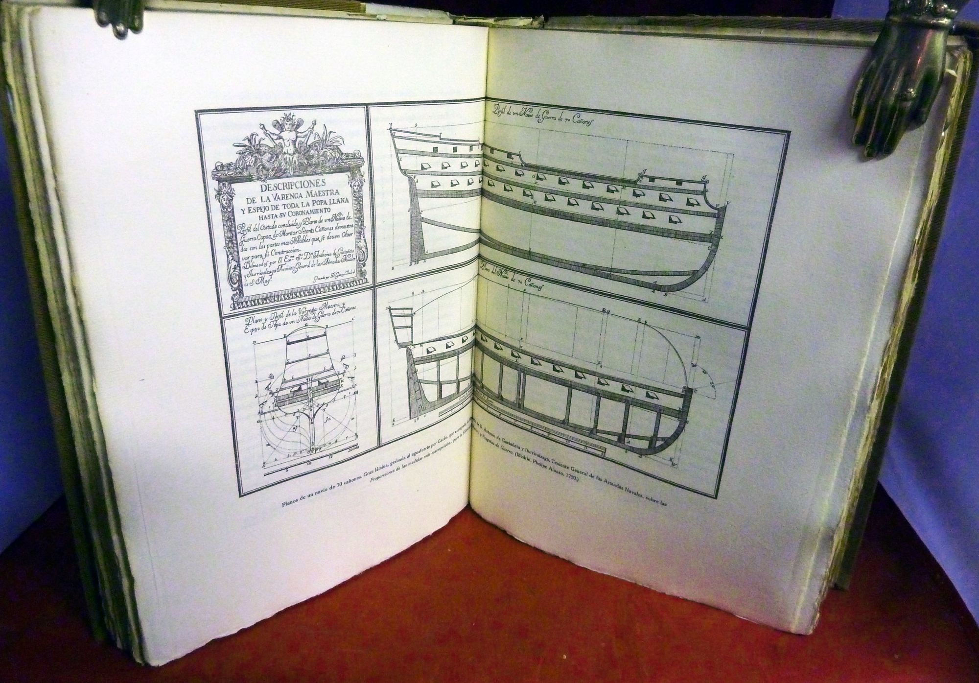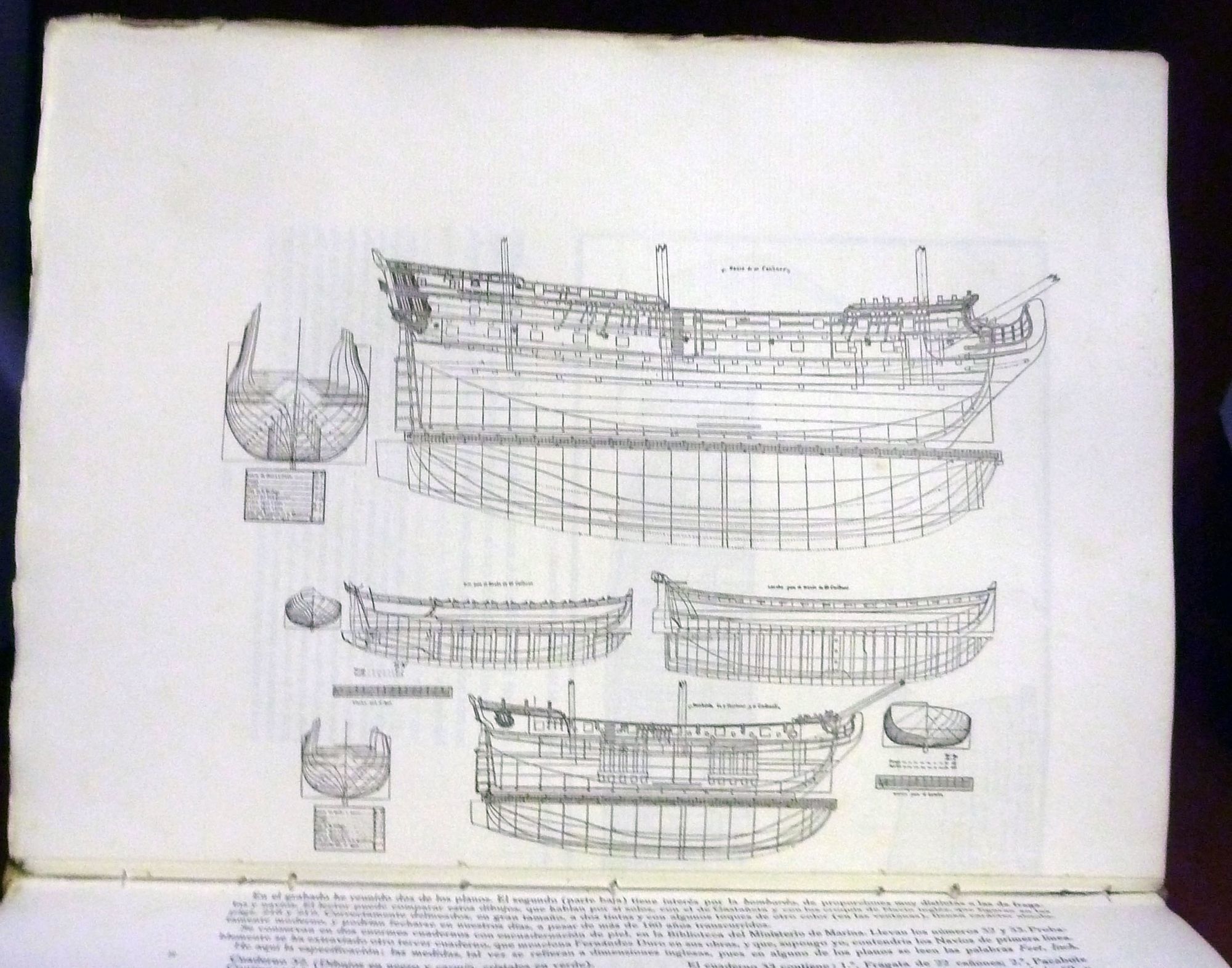 Madrid: Por El Autor, 1920. First edition. Hardcover. Orig. half vellum and brown cloth. Very good. 427 [1] [172] pages in text. 32 x 23.5 cm. Unknown limitation, this copy no. 51 on "papel de hilo," signed by the author. 90 leaves of plates, 12 in color, text profusely illustrated, headpieces, historiated initials, many tinted in sepia and sanguine, decorated endpapers. Contains half-title page. Includes appendices bibliographical references and index. Major work, naval architecture of wooden ships, some of the illustrations to scale. PALAU I, 521. Backstrip darkened, small nicks head of latter.
