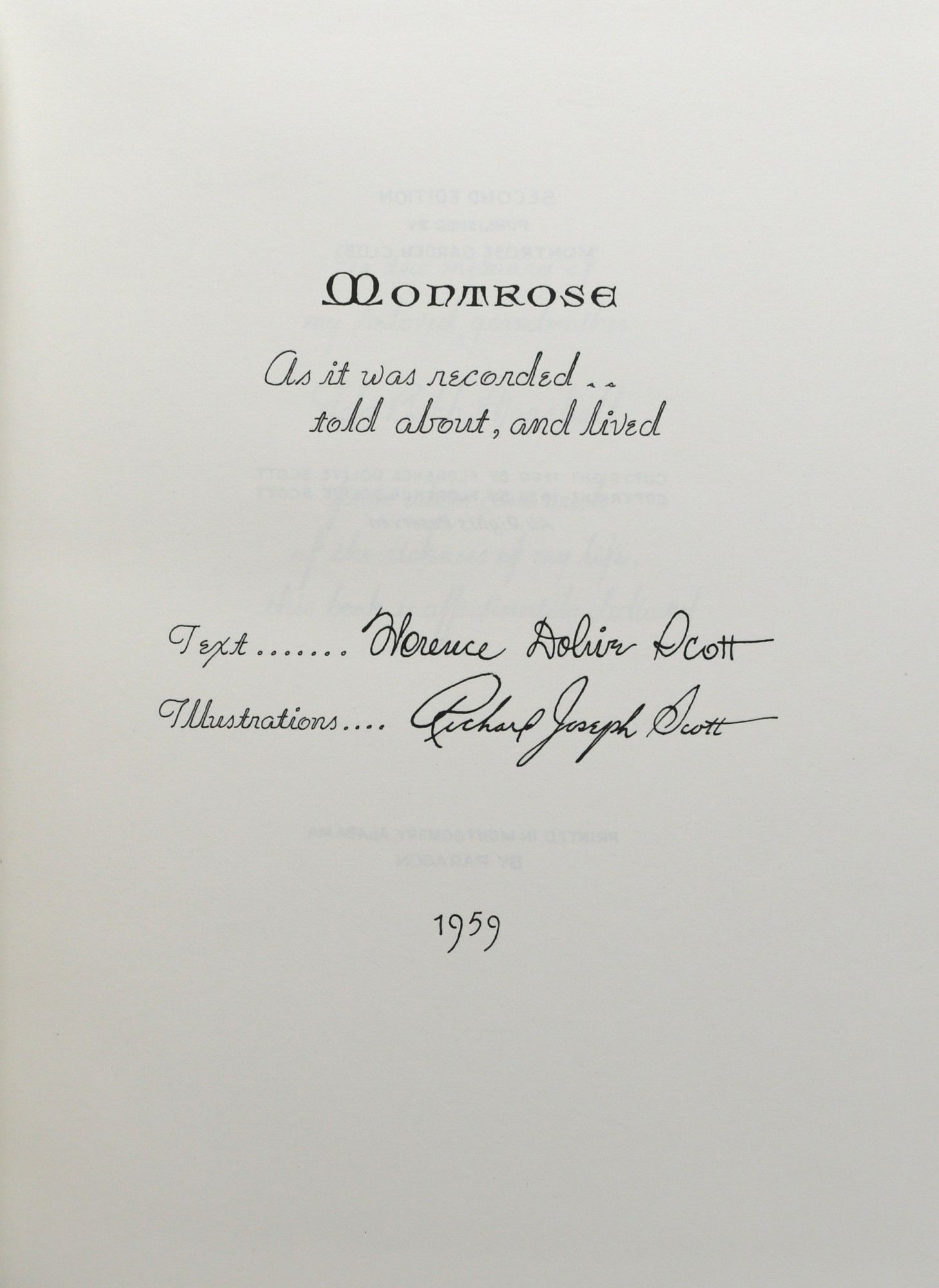 Montrose, Alabama: Garden Club, 1976. Second Edition. Hard Cover. Fine binding/Fine dust jacket. A lovely copy with no marks of any kind. This copy appears to be unmarked and unopened. The dustjacket is not price clipped and is now protected in a mylar cover. Fine binding / Fine dust jacket.