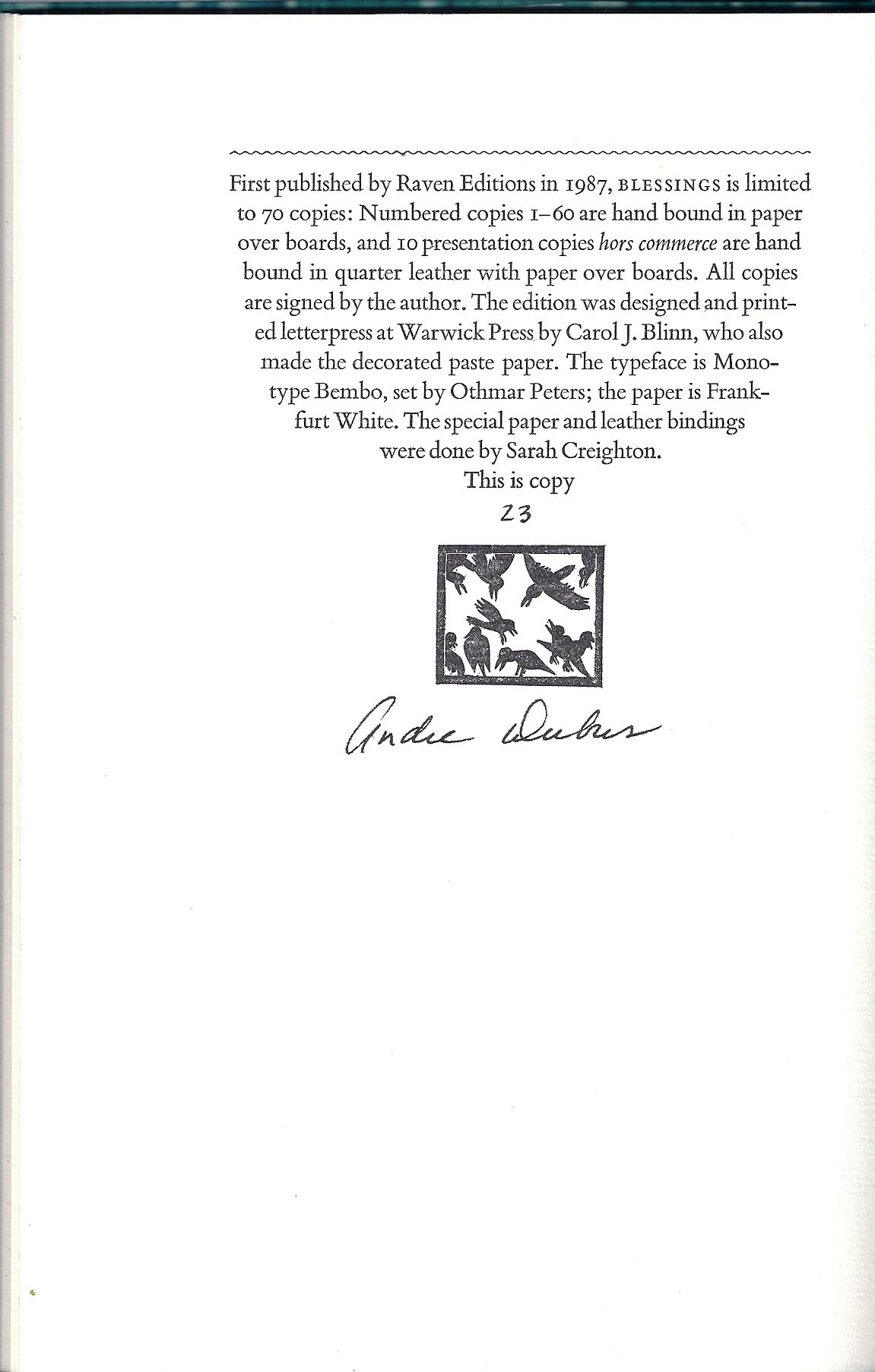 Elmwood, CT: Raven Editions, 1987. First Edition. Hardcover. Fine. Bound in blue decorated paste paper over boards made by Carol Blinn who also designed and letter-pressed the book at Warwick Press. Copy #23 of only 60 numbered copies (of a total edition of 70) SIGNED by the author constituting the First Separate Edition of this story. A very attractive book by one of the modern masters of the short story.
