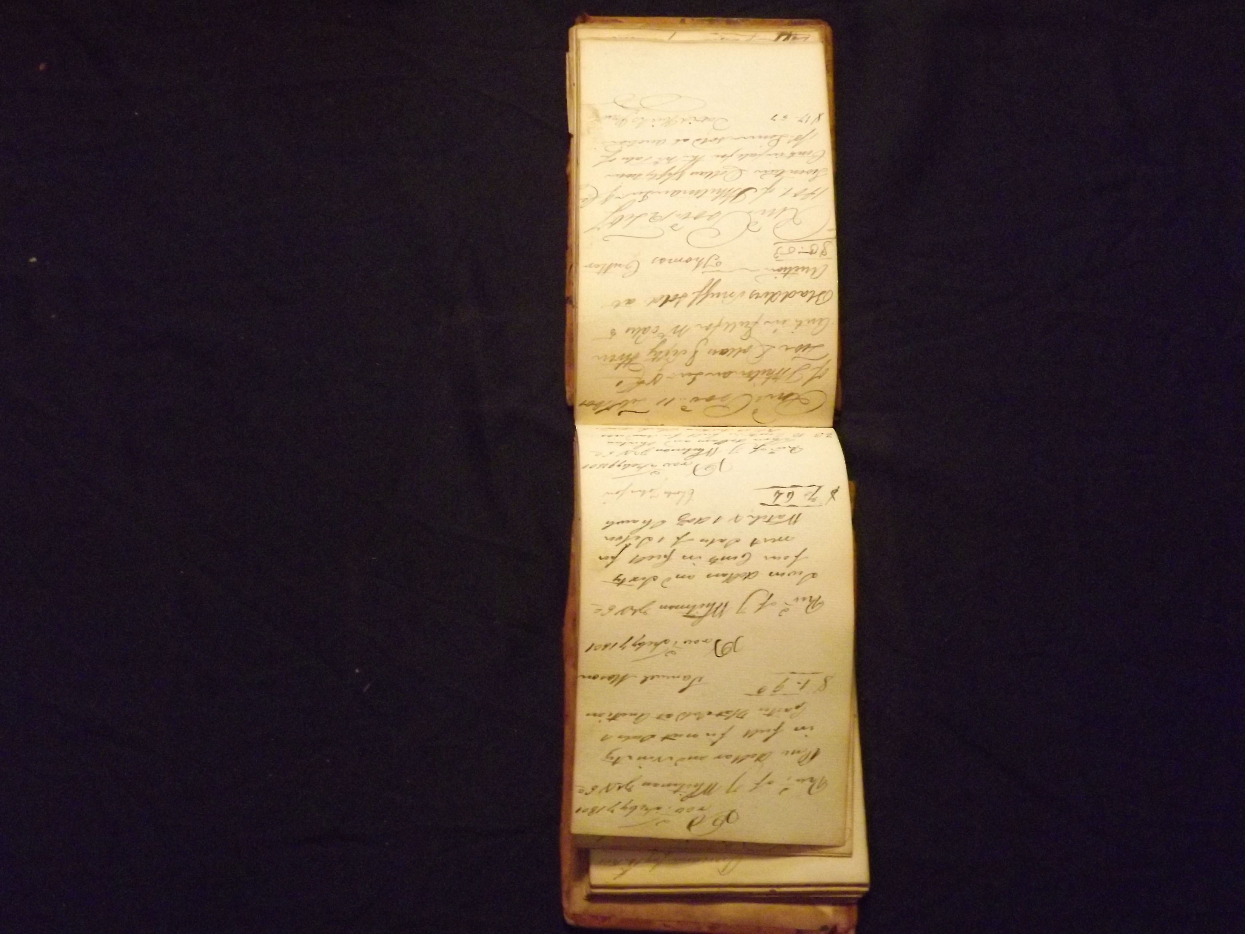 Rectangular small 8vo, (8" x 5"), split calf, receipt book 1801 written on cover some faded writing on other cover, about 85 leaves. Top cover detached, rear almost detached, covers worn, small pasted label on pastedown, a few pages slightly loose, some aging and browning, and a little staining, but internally very good overall. Interesting early Rhode Island business receipt book for the Jacob Whitman & Co. Based in Providence, Whitman appears to be an auctioneer. Consignors used Whitman to sell a broad range of items, including tobacco, tea, old cloths, chairs, soap and even chocolate. Most of the writing is legible (some more than others), and many consignors signed the book to acknowledge receipt of payment. There are about 85 leaves, and information is recorded on both sides of the page.