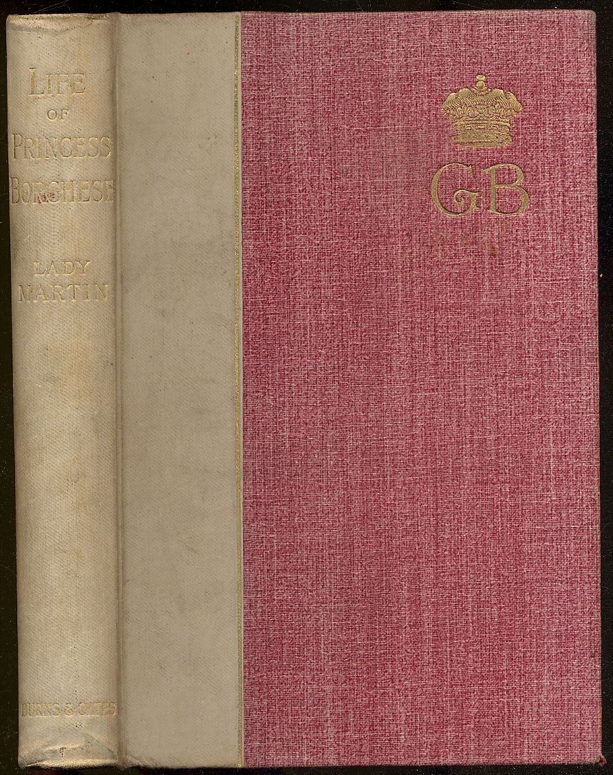 London: Burns & Oates, 1894. Hardcover. Very Good. First edition. 12mo. 214pp. Half white and pink cloth stamped in gilt. Translated by Lady Martin. Spine slightly cocked, cloth moderately soiled, else very good. "With additions, extracts from the Princess Borghese's diary; and letters hitherto unpublished." Scarce, *OCLC* locates only 8 copies.