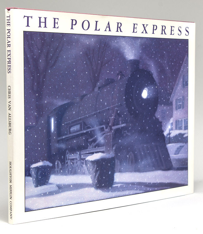 Boston: Houghton Mifflin Company, 1985. First edition. Full page colour illustrations by the author. 1 vols. Oblong 4to. Crimson cloth blocked in silver. Fine in very good unclipped dj, front panel and spine faded. Van Allsburg, Chris. First edition. Full page colour illustrations by the author. 1 vols. Oblong 4to. A Caldecott award winner and New York Times bestseller. The story of a young boy who takes the train to the North Pole and meets Santa and his elves. This classic Christmas tale has enchanted children for the last 30 years.