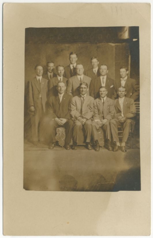 Unbound. Very Good. Real photo post card. Split back for name and address and correspondence. Mailed and dated in 1910. Misprinted by the photographer, there is a slight misallignment in the image, else very good. Mailed from Reading to Bucks County, Pennsylvania. Image of twelve men dressed in suits and ties, the message says "All these boys are working for The Pittsburgh Company." Real photo postcards came about when Kodak manufactured a camera for amateurs that allowed the photographer to make larger size images that could be printed on a "post card" back card. As these were usually only printed in very small numbers and usually non-professionally they are generally considered amongst the most desirable forms of post card and are highly collectible.