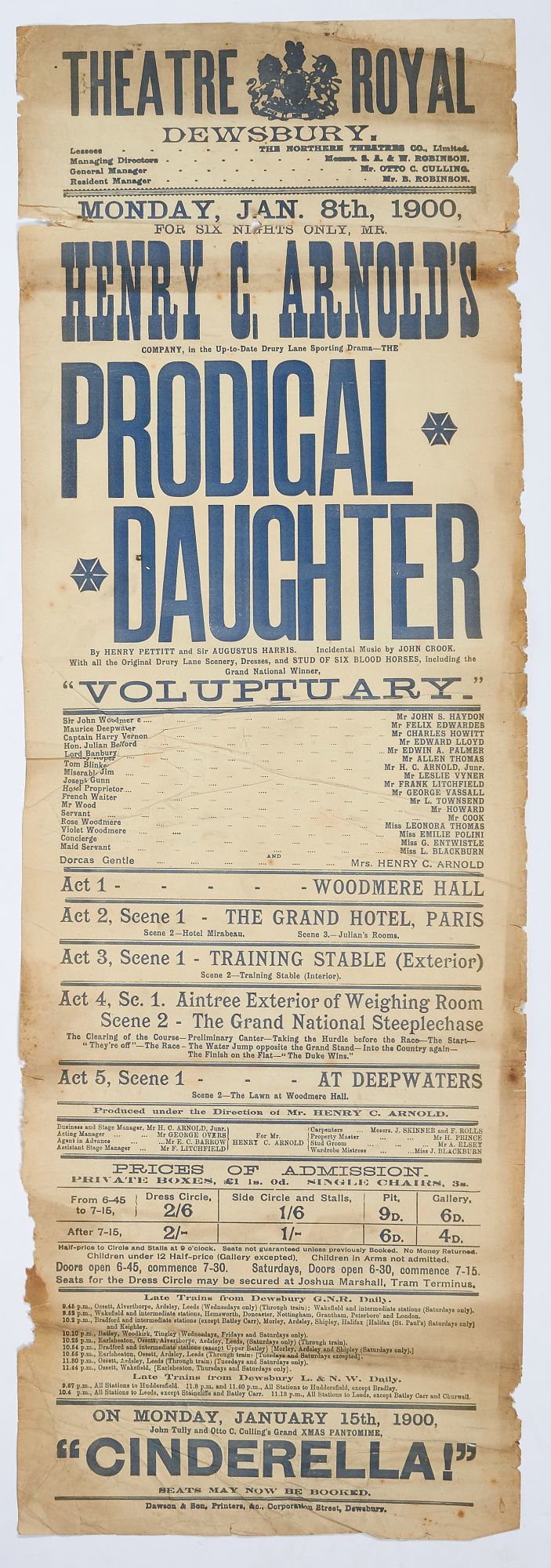 [Broadside]: Theatre Royal, Dewsbury For Six Nights Only, Mr. Henry C. Arnold's Company, in the Up-to-Date Drury Lane Sporting Drama The Prodigal Daughter