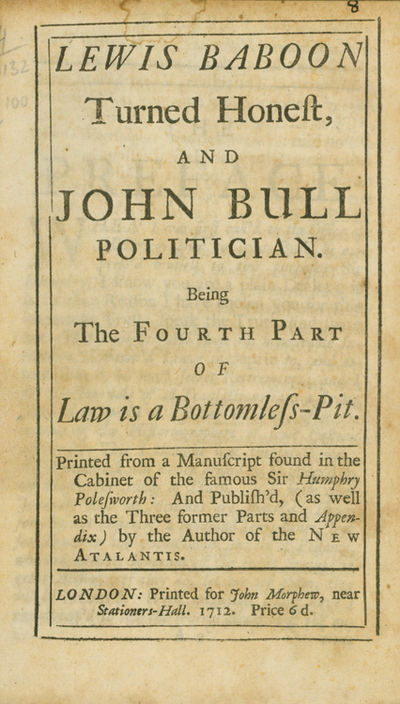 Lewis Baboon turned Honest and John Bull Politician. Being the Fourth Part of Law is a Bottomless-Pit. [bound with:] A Complete Key to the Three Parts of Law is a Bottomless-Pit