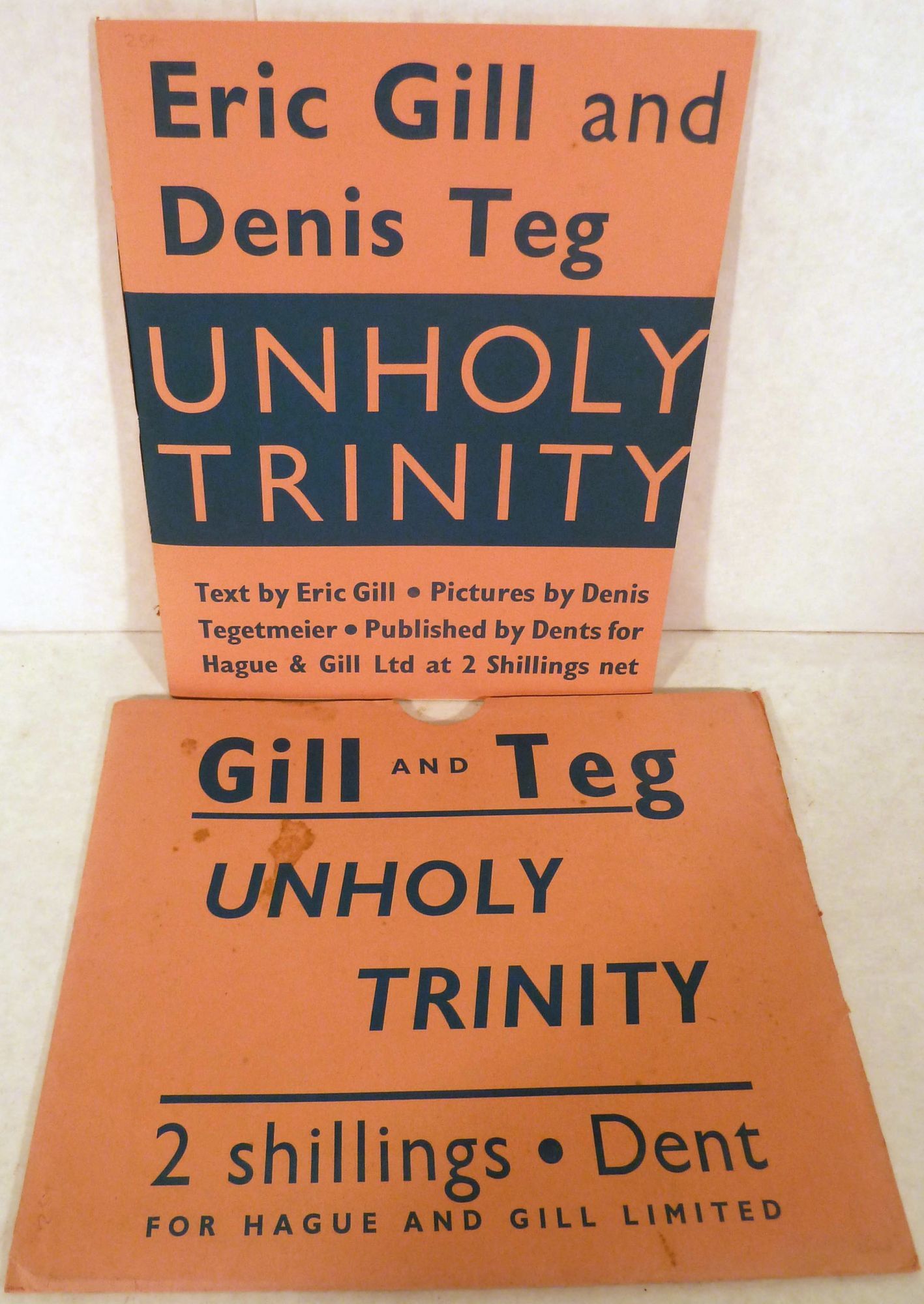 London: J.M. Dent, 1938. First edition. Original Wraps. Orig. salmon wrappers printed inblue. Fine in the original printed, matching sleeve. Latter is lightly spotted, very good. Tegetmeier, Denis. Unpaginated, approximately 24 pages. Text by Gill with eleven full-page illustrations by Denis Tegetmeier, his son-in-law. Printed by Hague & Gill for Dent. An usually crisp copy, but more important, the often lacking printed sleeve is present and more than serviceable. GILL37.