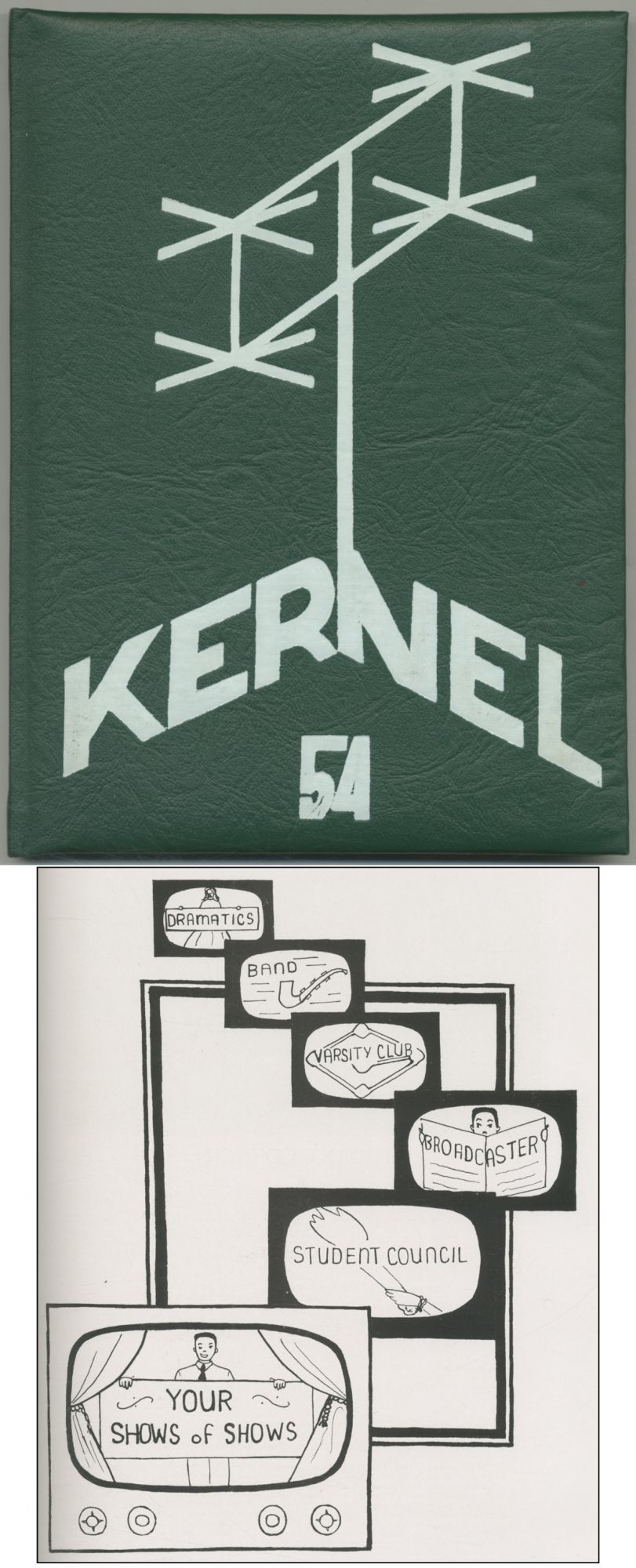 Oxford, Pennsylvania: Oxford Area High School, 1954. Hardcover. Fine. First edition. Quarto. 78pp., plus ads. Illustrated. Illustrated green leatherette. Fine. Yearbook for a small Chester County high school, some of the illustrations are inspired by television.