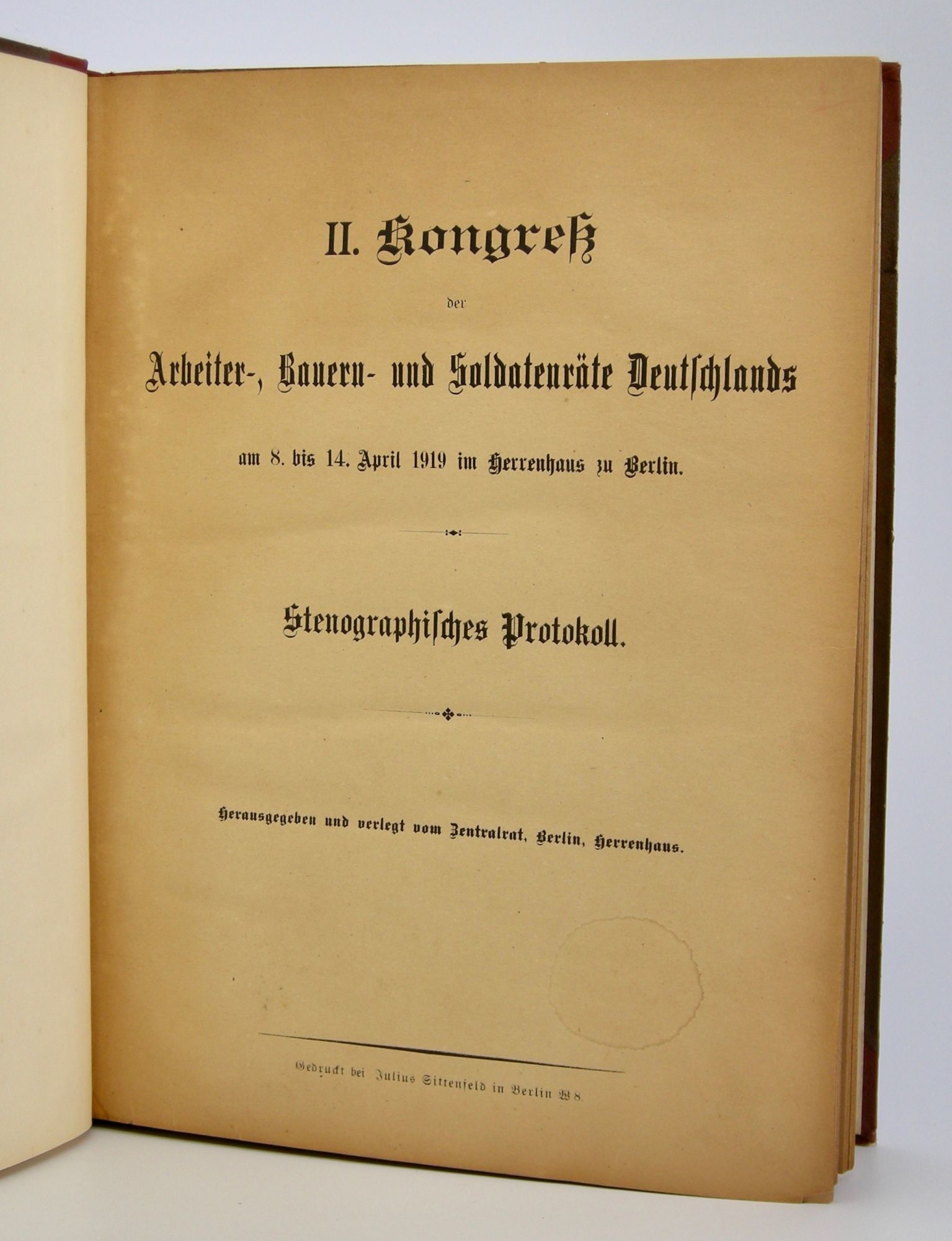 II. Kongress der Arbeiter-, Bauern- und Soldatenräte Deutschlands; am 8. bis 14. April 1919 im Herrenhaus zu Berlin - Stenographisches Protokoll. Herausgegeben und verlegt vom Zentralrat, Berlin, Herrenhaus
