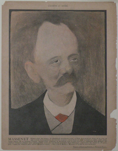Colour photo-mechanical portrait printed in tones of sepia, red, black and tan with short textual addition below portrait. Published in the satiric journal L'Assiette au Beurre in 1902. Sheet size 313 x 241 mm. With portrait of the French composer Charles-Marie Widor (1844-1937) to verso.