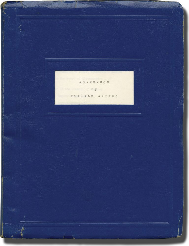 New York: Delia Productions, 1970. Mimeograph play reproduction of William Alfred's 1954 play "Agamemnon" for an unproduced film based on the play.