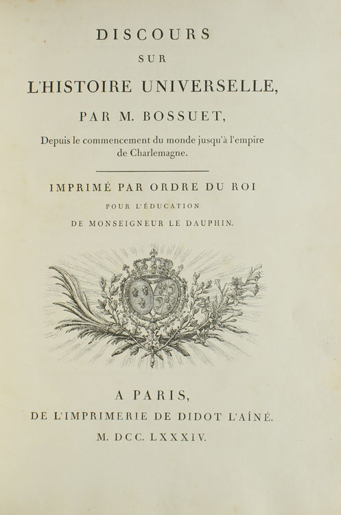 Discours sur l'Histoire Universelle … Depuis le Commencement du Monde Jusqu’a l’Empire de Charlemagne [from: Collection des Auteurs Classiques François et Latins]