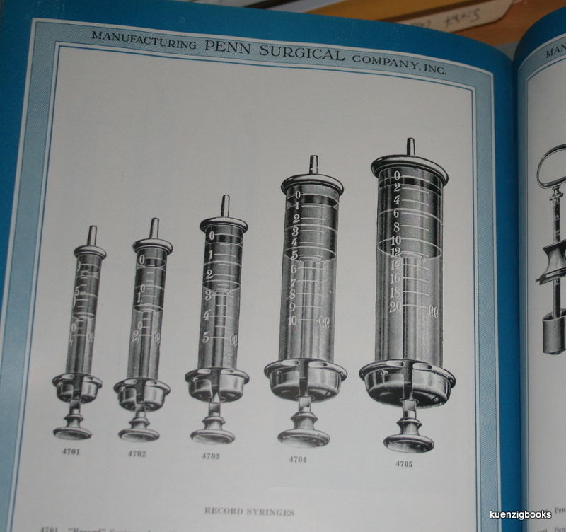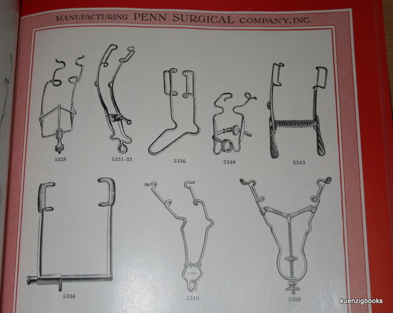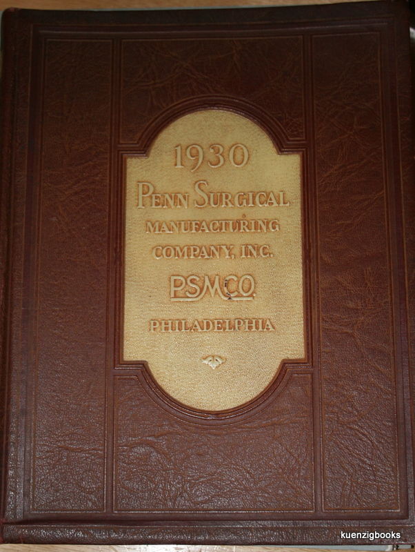 Philadelphia: Penn Surgical Mfg. Co., Inc, 1930. First Edition. Stiff wraps. Very Good. First Edition. 367 + 10 pages index. Original faux leather binding in two tones. 8 1/2 x 11 inches. Minor wear overall. Binding sound. Stiff wraps. A nicely illustrated catalog of surgical apparatus available in 1930 from the Penn Surgical Manufacturing Company, Inc. Scarce, with only one copy in OCLC (CLEVELAND HEALTH SCI LIBR, 54893303). This era of surgical instruments is in stark contrast with the automated, computer assisted surgery so rapidly being deployed these days. This catalog contains almost exclusively hand tools for the surgeon.