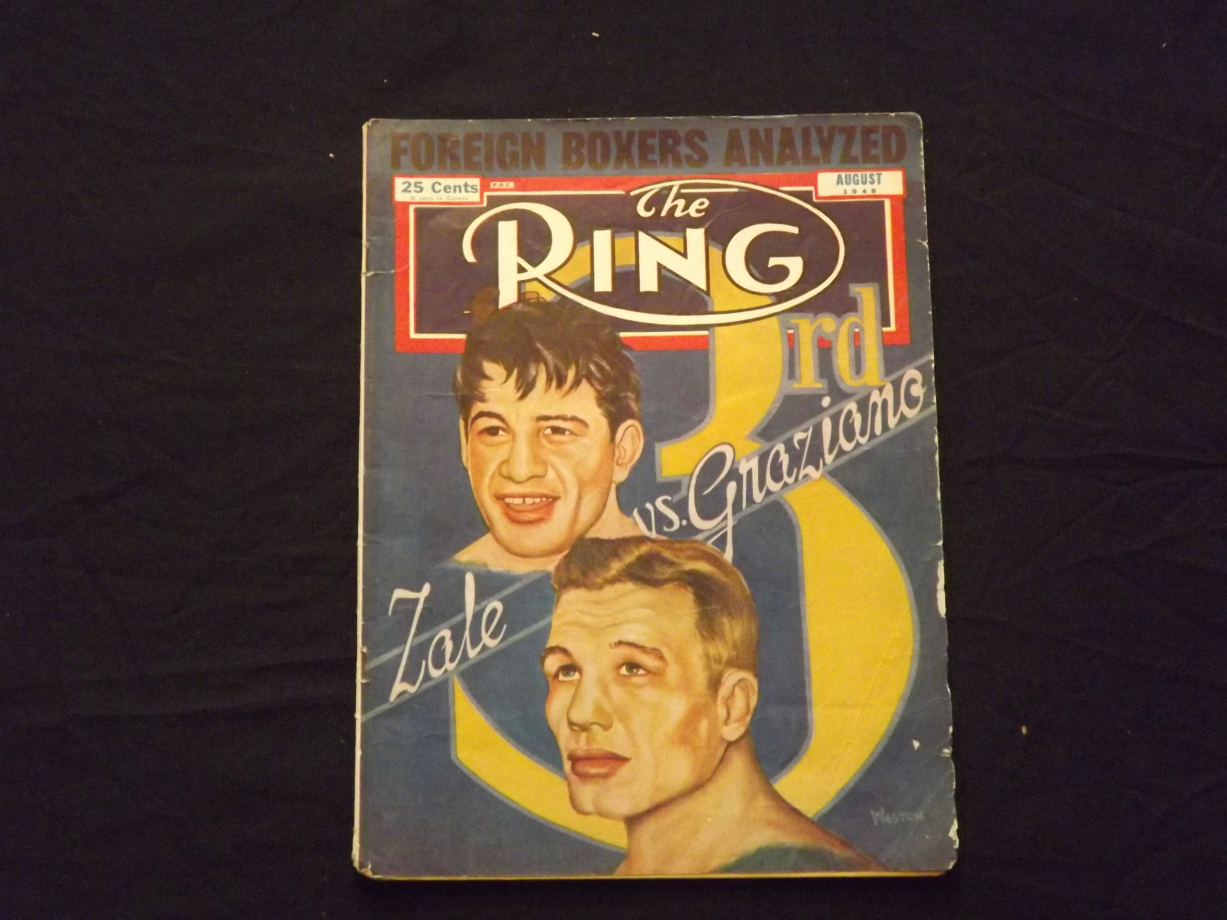 4to, magazine, glossy covers, illustrated, 64 pp. 4to, magazine, glossy covers, illustrated, 64 pp. Covers with some chips and wear at extremities, spine in good shape, paper fragile, a couple of margin tears, browning and aging; about very good. The Zale and Graziano cover relates to coverage of the third and final bout between these two fights. Zale regained his middleweight title with a third round knockout of Graziano. All three of their fights were won inside the distance, and have to be considered among the most brutal in boxing history.