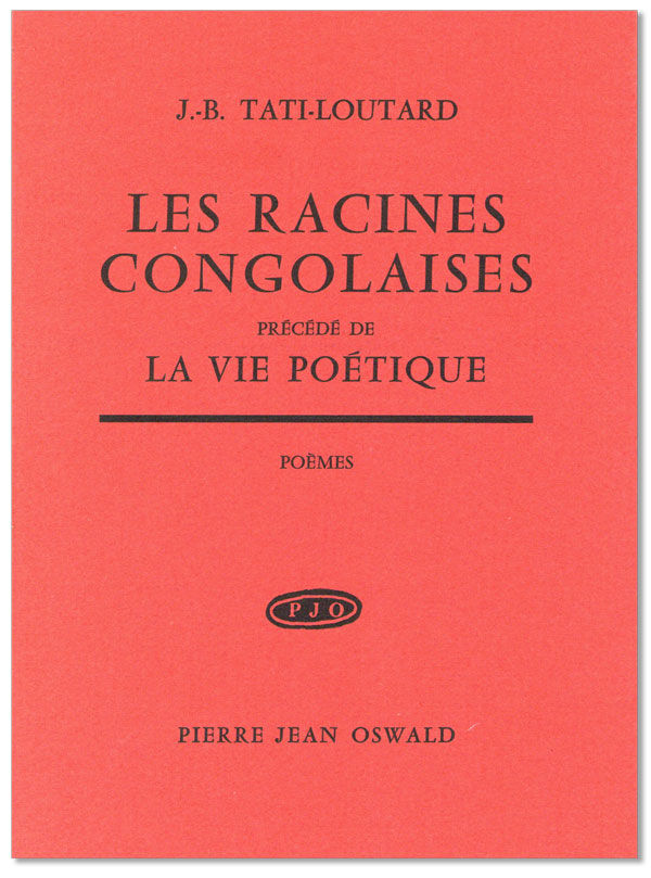 Honfleur: Pierre Jean Oswald, [1968]. First Edition. Slim 12mo (17.75cm.); original red printed wrappers, French flaps; 73,[4]pp. Fine. Second poetry collection by Congolese politican and author Jean-Baptise Tati-Loutard (1938-2009), at the time teaching at the Centre for Graduate Studies in Brazzaville. He would later serve as Minister of Higher Education and Minister of Arts and Culture and founded the political party Mouvement Action Renouveau (Action Movement for Renewal).