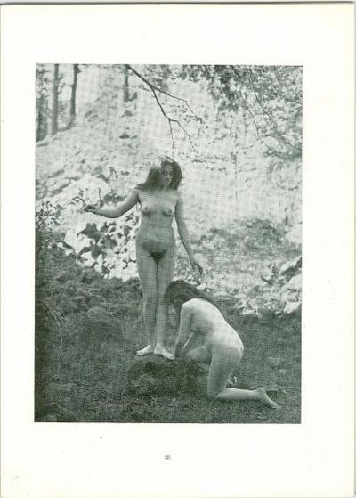 Paris, 1905. Supplement Aux Beautes de La Femme. A 44pp. booklet with paper wraps. Includes images from photographs of nude young ladies. French text. Images in black and white or pink tone. Four pages of almanac each with nude. Remainder of booklet includes text and images of one or two women together often in loving poses. Artfully posed and presented. Measures 6 1/2" x 8 1/2". Light cover wear; otherwise fine.