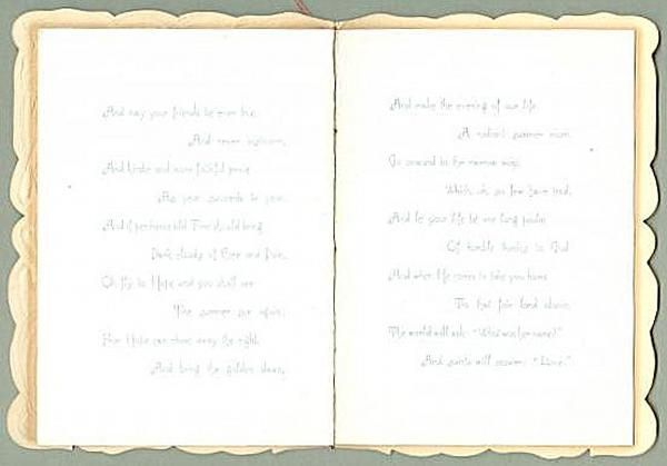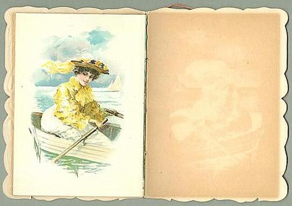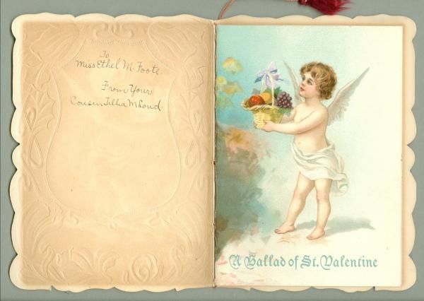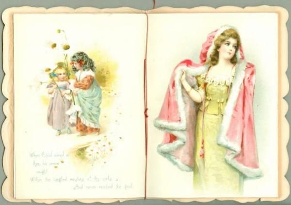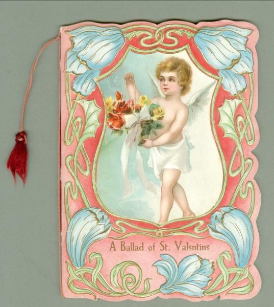 Frances Brundage. No publisher, place of publication or date. An 8 pp. heavy stock Valentine gift book with embossed die-cut covers. Four of the eight pages are full page chromolithograph illustrations. Appear to be the work of Frances Brundage. The remainder of the pages are rhyming verse. Front cover has Art Nouveau influenced poppy border. c1905. Measures 7 1/2" x 5 1/2". Condition: overall excellent.