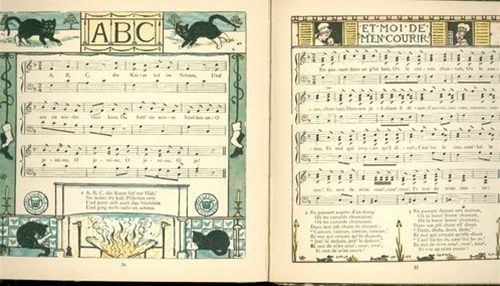 London: Frederick Warne & Co. Ltd., 1900. Hardcover. edge wear on cover. Arranged and Decorated by Walter Crane. . A Companion to the “Baby’s Opera”. The Tunes Collected & Arranged by L.C. Pictorial covers. Profusely illustrated throughout with full page, in-text and border decorations A song book of thirty-seven (37) nursery songs with words and music. Cupid fleur-de-lys cover design with Cupid at center amidst nursery rhyme characters. Decorated end papers. Measures 7 ½” x 7 ½”.