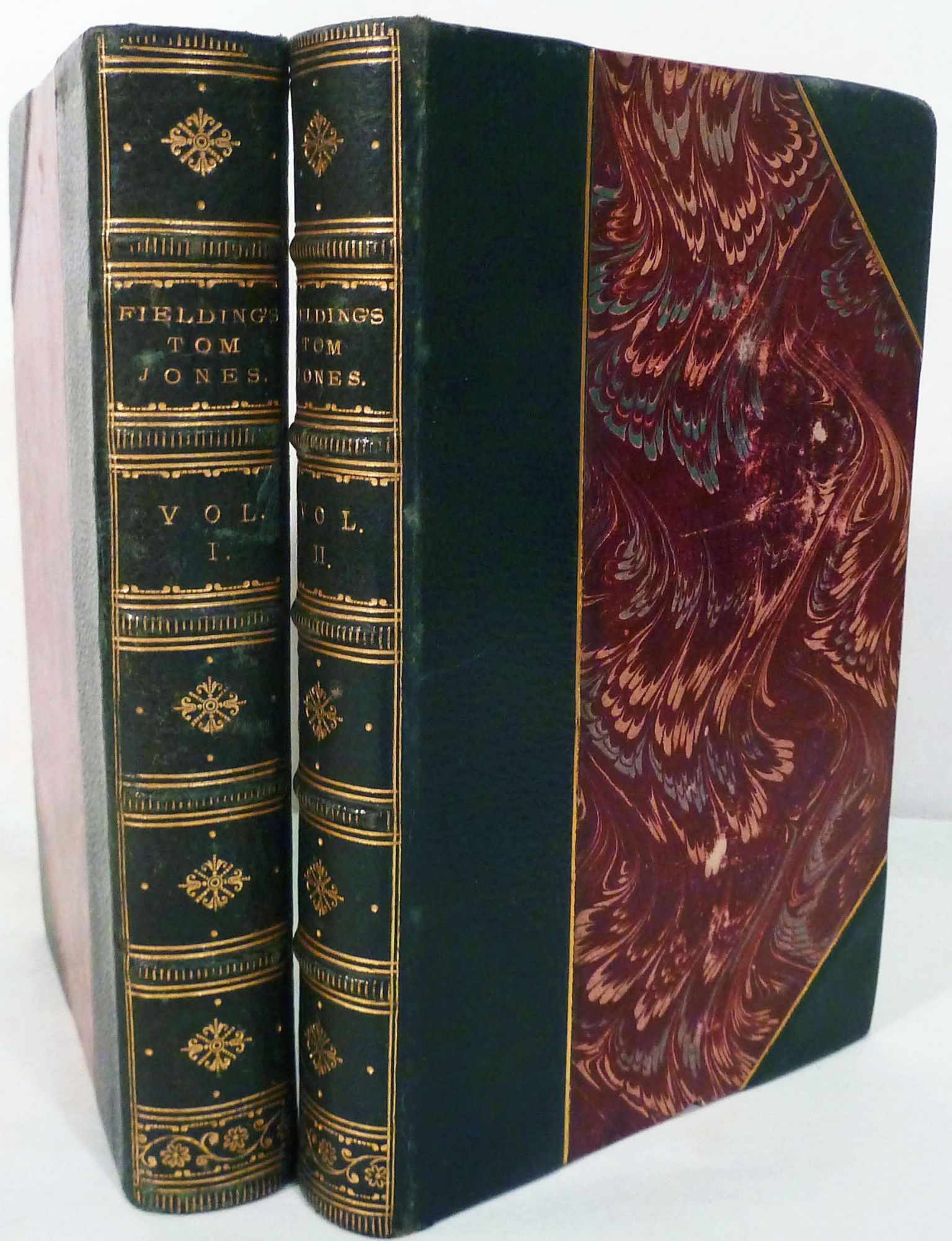London: James Cochrane and Co, 1831. Hardcover. Three quarter navy morocco, marbled boards, matching marbled endpapers. Teg. Very good 2 vols.. 456, 448 pages. 17 x 11 cm. Eight etchings and a portrait of another artist after Hogarth. List of illustrations in the second volume. Vols. 5 & 6 of Roscoe's Novelist's Library of a total of 19 volumes in the series. COHN 705. Fresh, bright set, bookplates, raised bands, spine panels decorated in gilt.