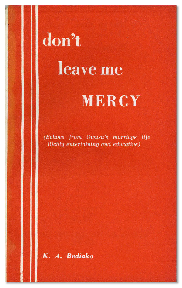 Accra: Anowuo Educational Publications, [1966]. Second Printing. 12mo (17.5cm.); original white and red wrappers; 118,[2]pp. About Fine. Bediako's early novella, describing contemporary Ghanaian marriage. "Richly entertaining and educative" (upper cover).