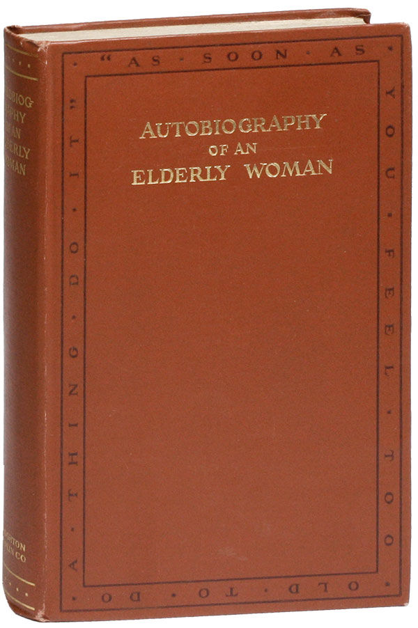 Boston: Houghton Mifflin Company, 1911. First Edition. Octavo (19cm.); original terracotta cloth lettered in black and gilt; [6],269,[11](ads)pp. Spine ends a touch rubbed, some light foxing throughout, else Very Good or better. Anonymously published work by labor activist and Rideout novelist Mary Heaton Vorse. Better known for her political activism in favor of such diverse causes as women's suffrage, civil rights, pacifism, and socialism. This novel, published shortly after the death of her first husband, is "an anecdotal and entertaining narrative...told from the point of view of a woman [Vorse's] mother's age who resents the circumscriptions youth imposes on the aged" (American Women Writers IV, p. 306).
