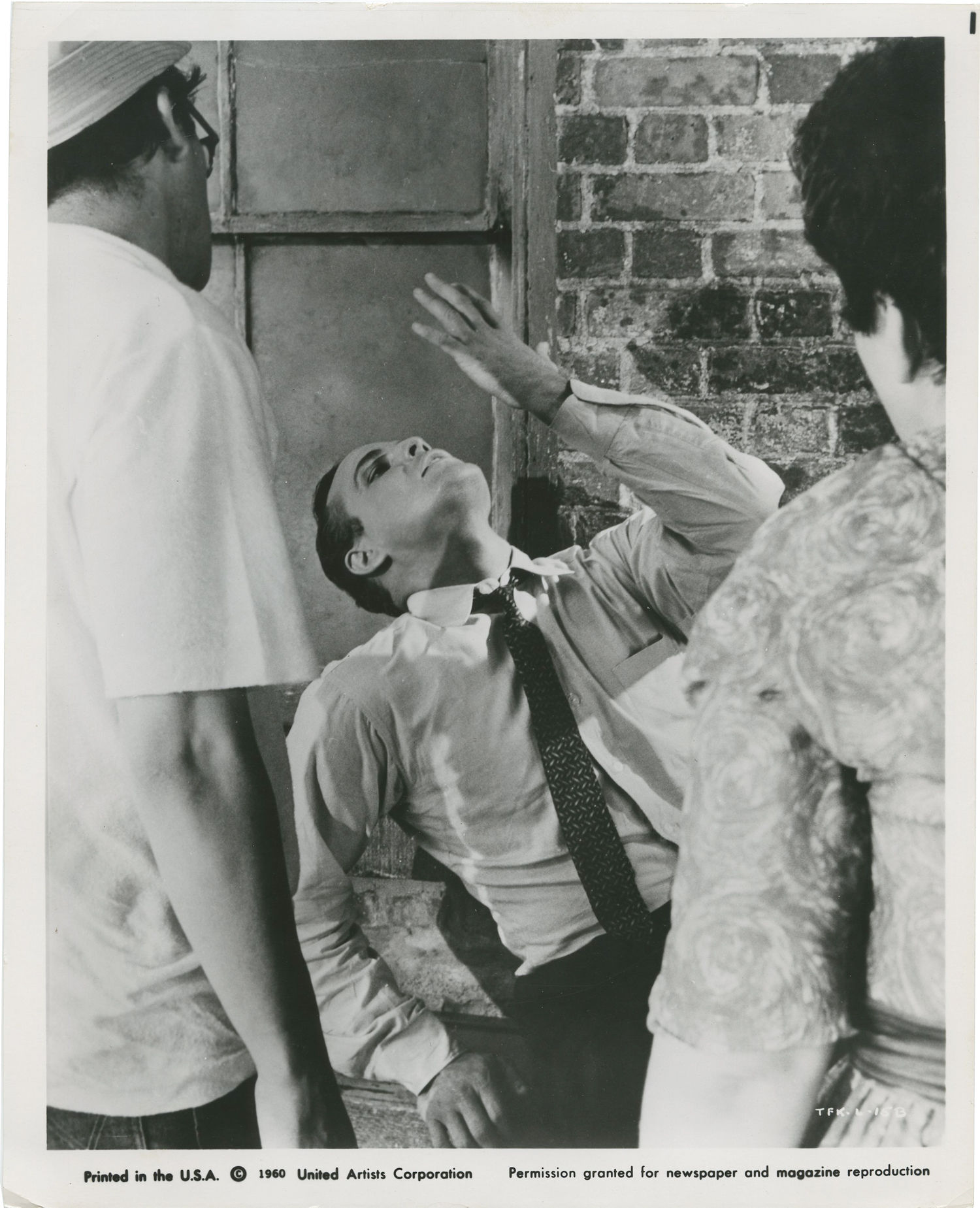 Beverly Hills, CA: United Artists, 1960. Vintage black-and-white reference photograph of Marlon Brando on the set of the 1960 film.
