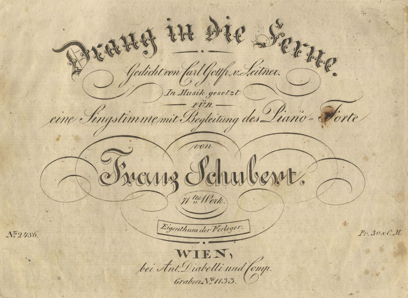 [D. 770]. Drang in die Ferne. Gedicht von Carl Gottfr. v. Leitner. In Musik gesetzt Für eine Singstimme mit Begleitung des Piano=Forte ... 71tes Werk ... No. 2486. Pr. 30 x C.M.