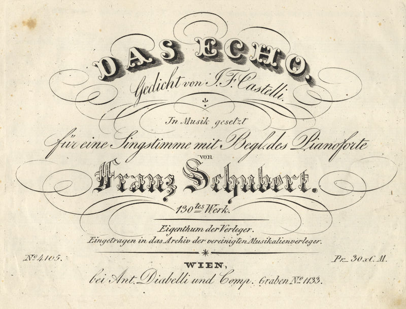 [D. 990c]. Das Echo. Gedicht von J. F. Castelli. In Musik gesetzt für eine Singstimme mit Begl[eitung] des Pianoforte... 130tes Werk ... Pr. 30 xC.M.